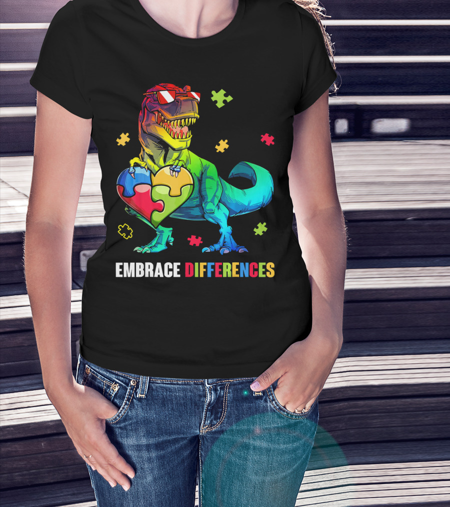 Embrace Differences Dinosaur Holding Heart Puzzle Pieces T-Shirt