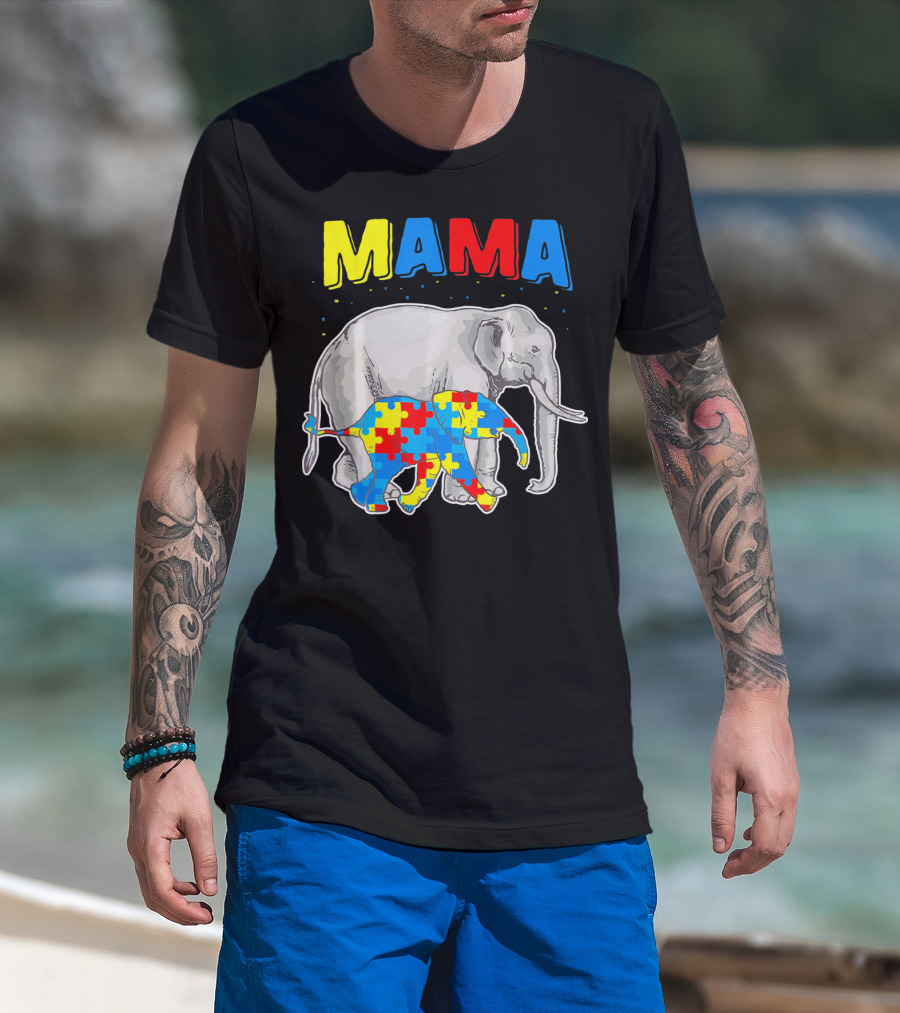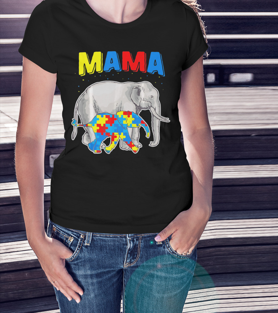 Mama Elephant Puzzle Piece Autism Awareness T-Shirt