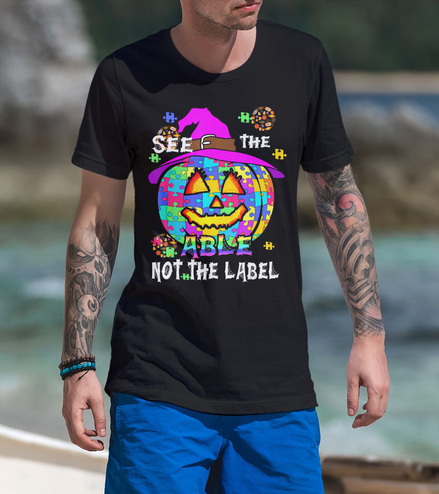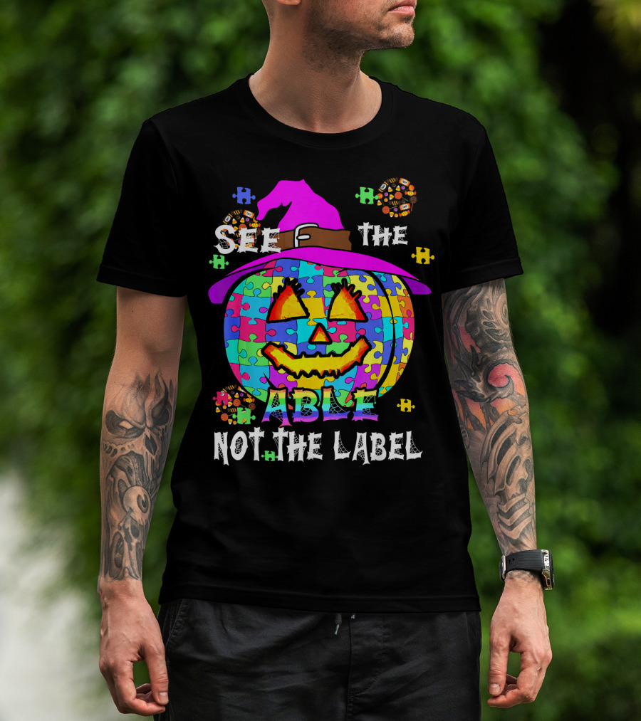 See The Able Not The Label Autism Awareness Pumpkin Puzzle Halloween T-Shirt