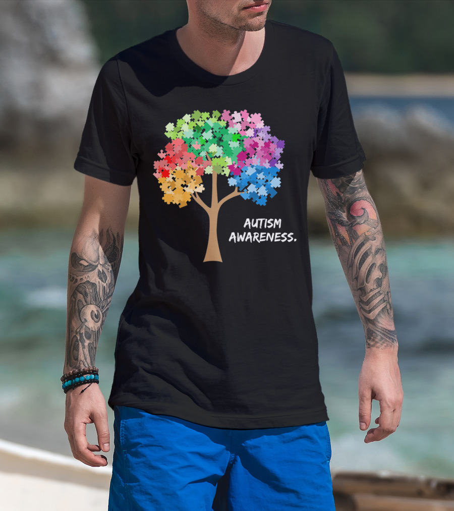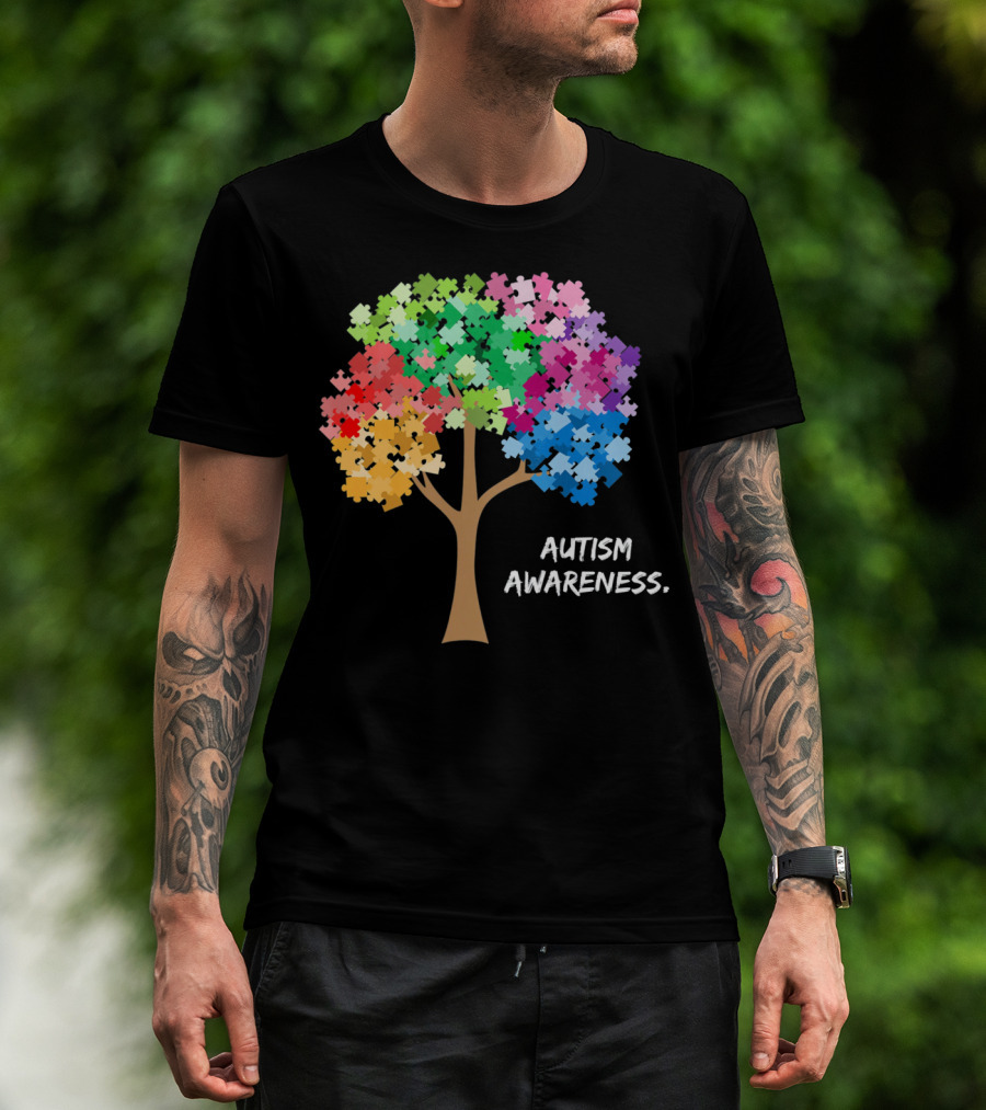 Autism Awareness Puzzles Tree Adults Rainbow T-Shirt