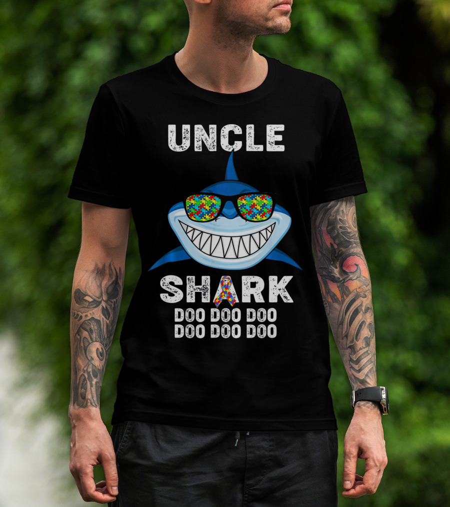 Uncle Shark Doo Doo Doo Autism Awareness Puzzle Sunglasses T-Shirt