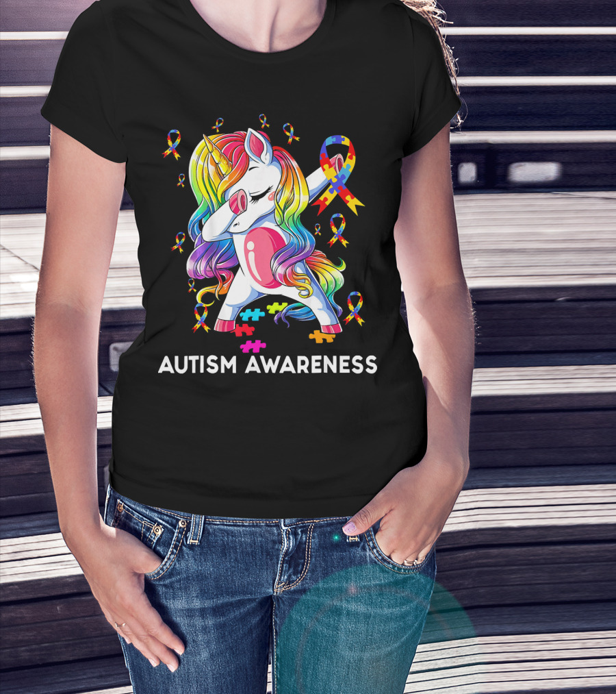 Autism Awareness Rainbow Unicorn With Puzzle T-Shirt