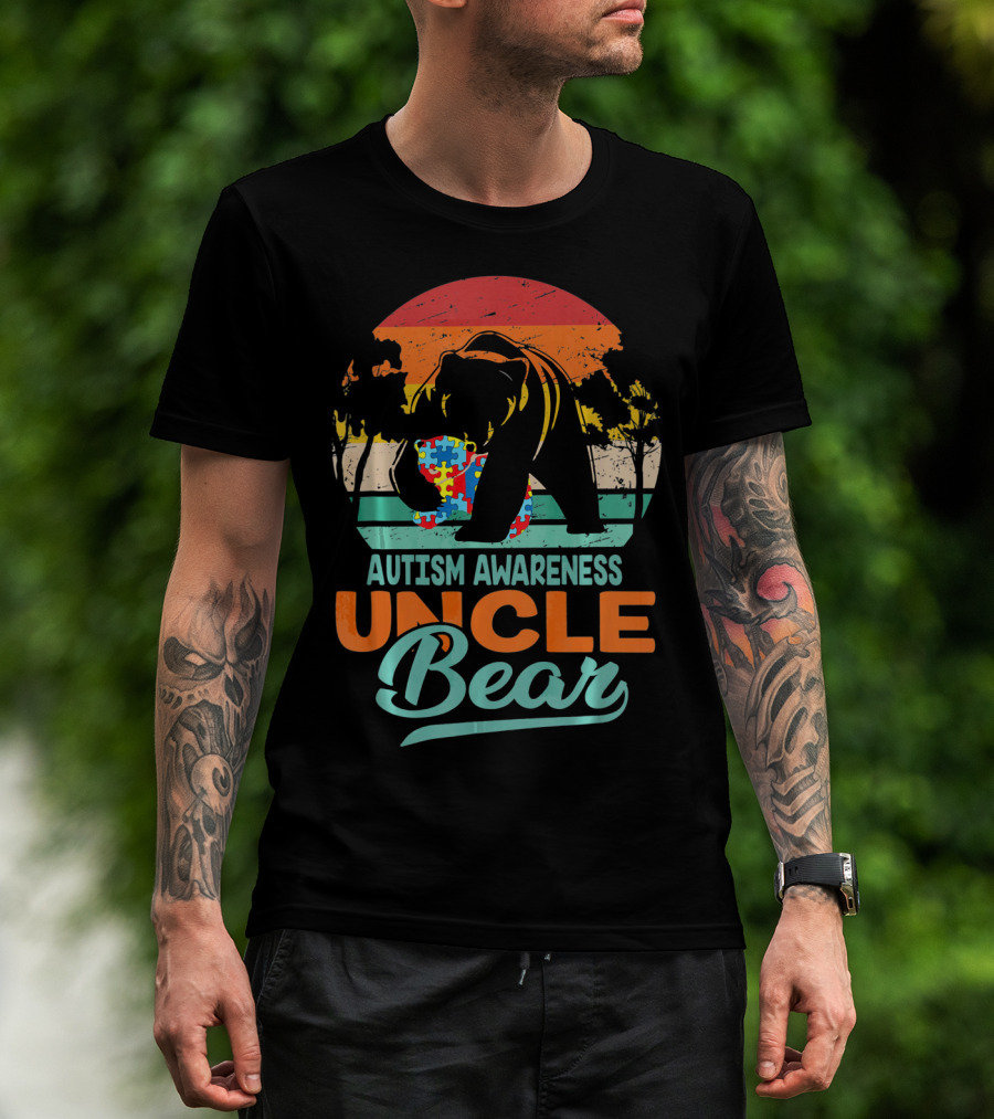 Autism Awareness Uncle Bear Puzzle Sunset T-Shirt