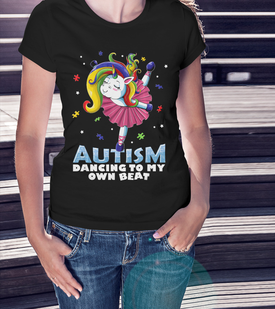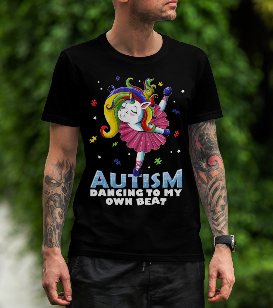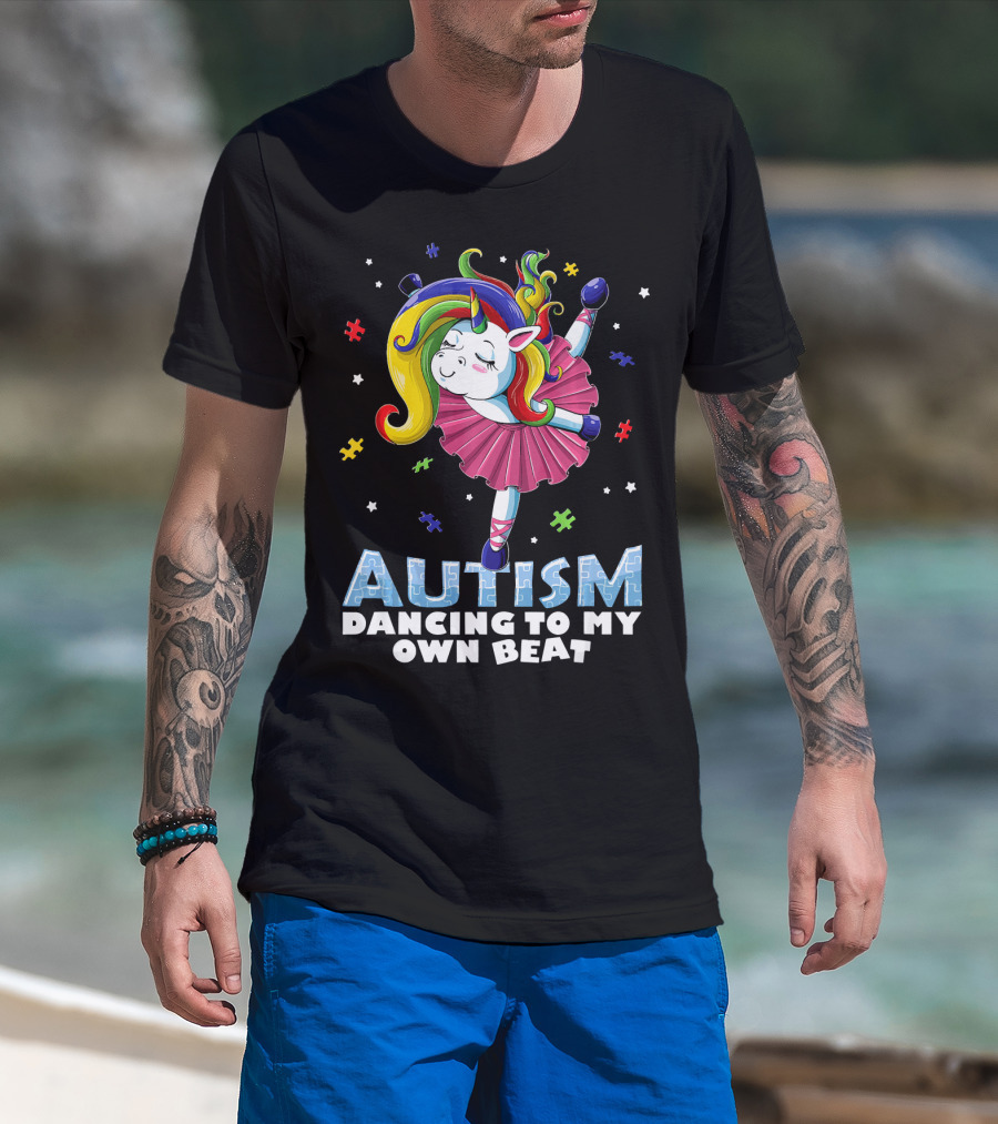 Autism Dancing To My Own Beat Unicorn With Puzzles T-Shirt