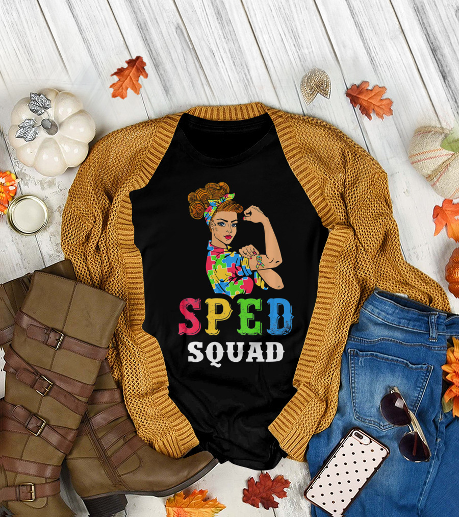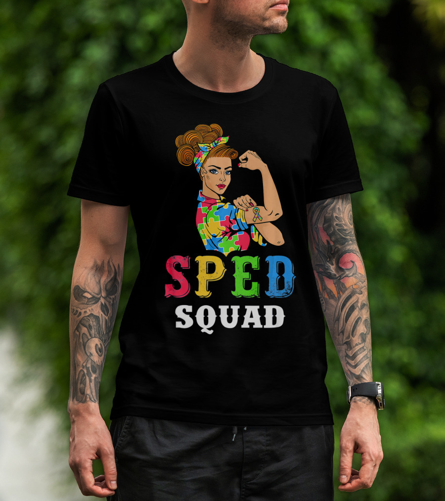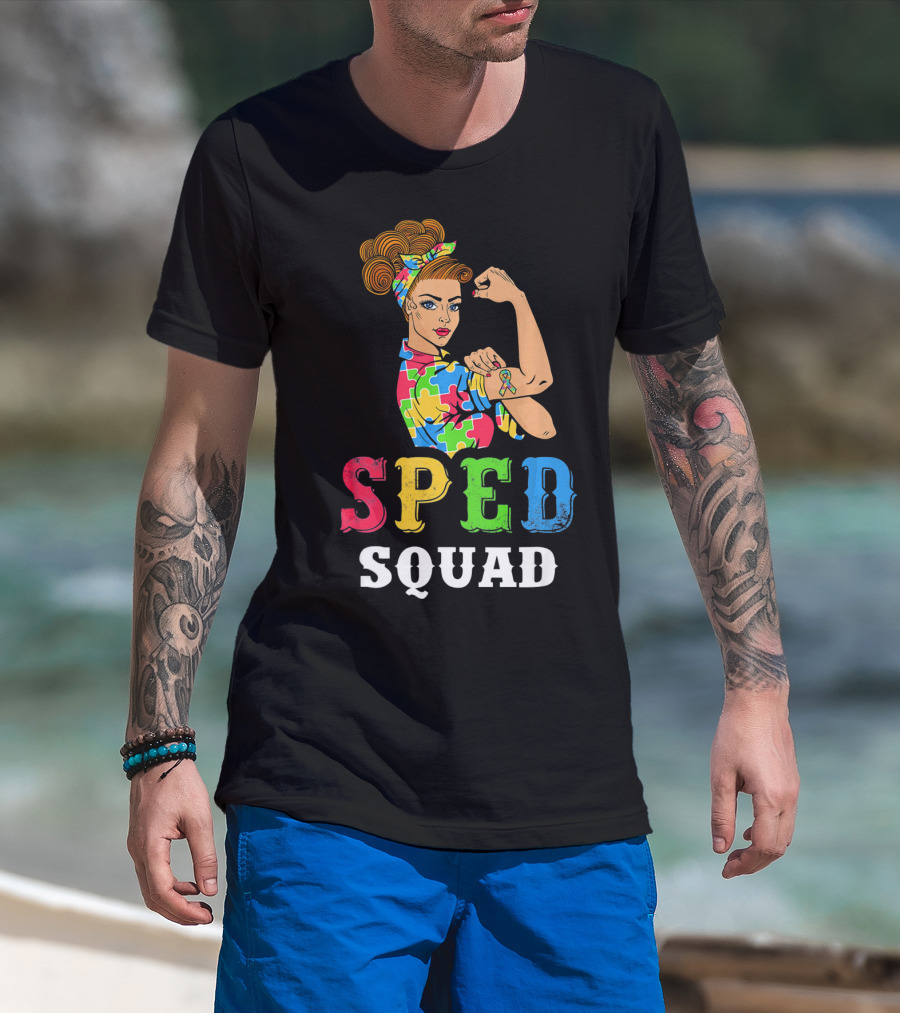 SPED Squad Autism Awareness Puzzle Ribbon Rosie Riveter T-Shirt