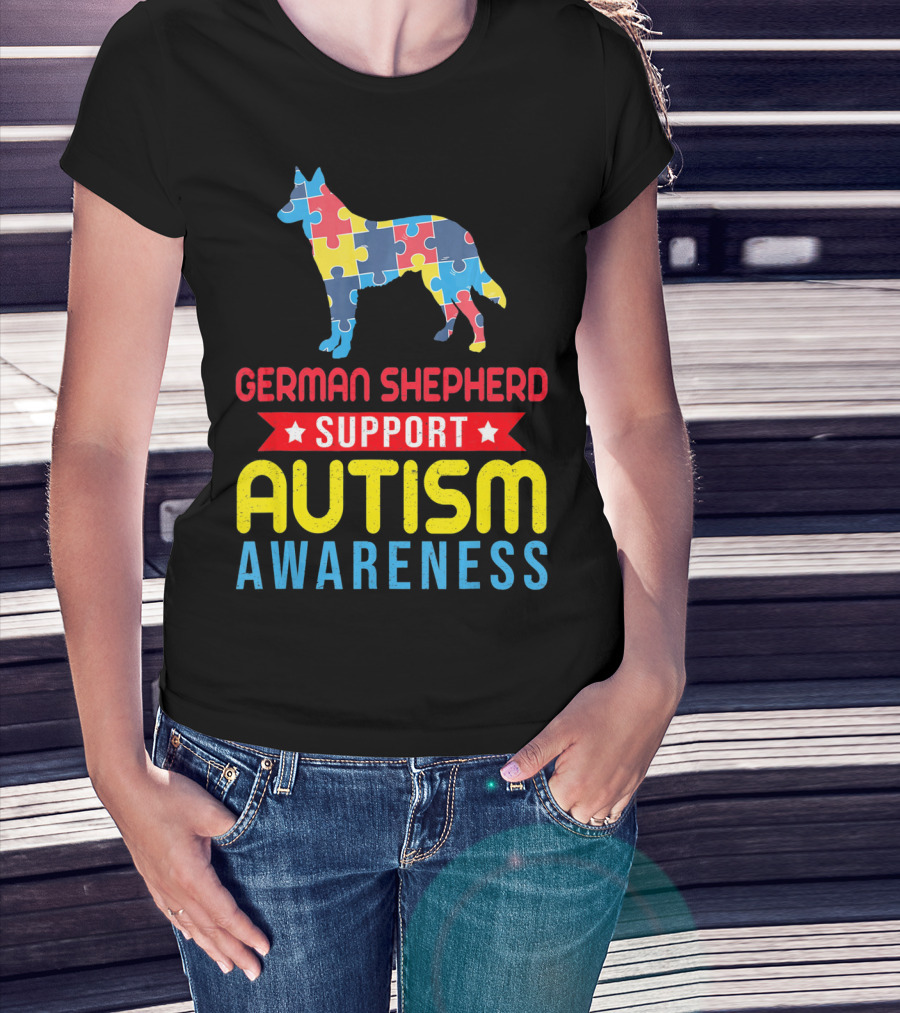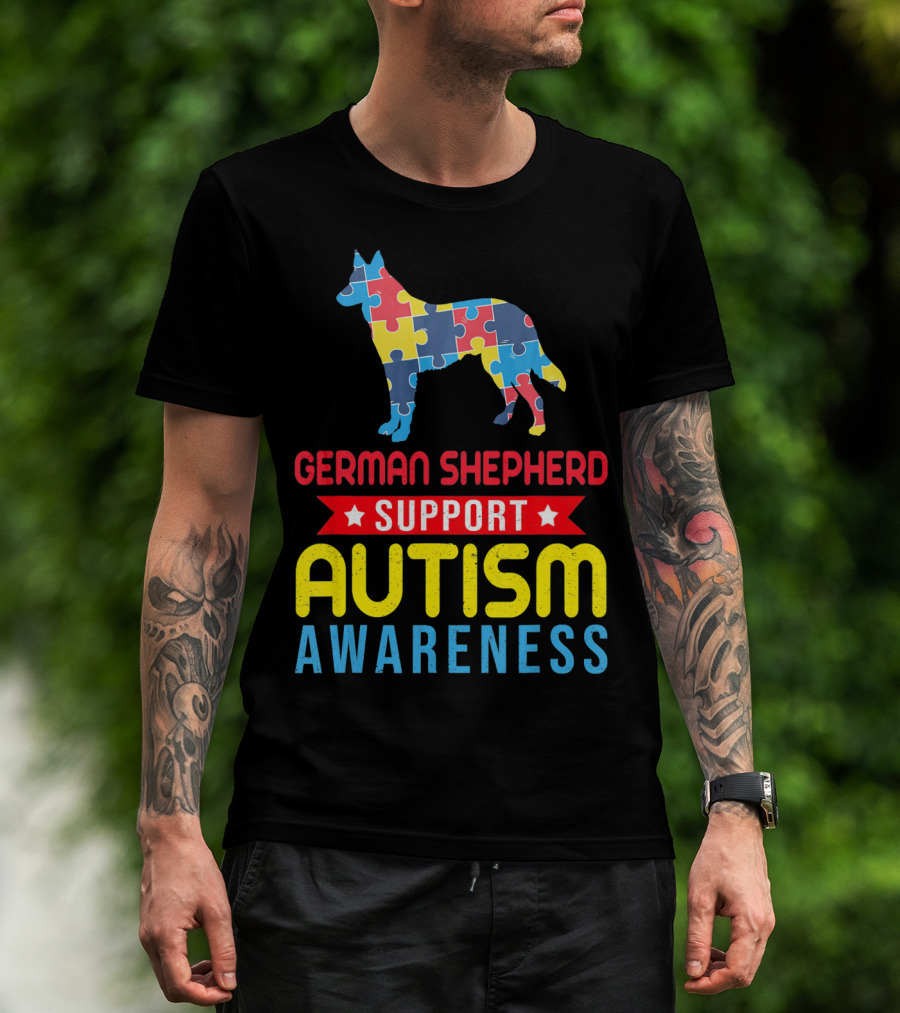 German Shepherd Puzzle Support Autism Awareness T-Shirt
