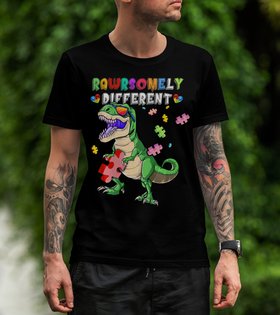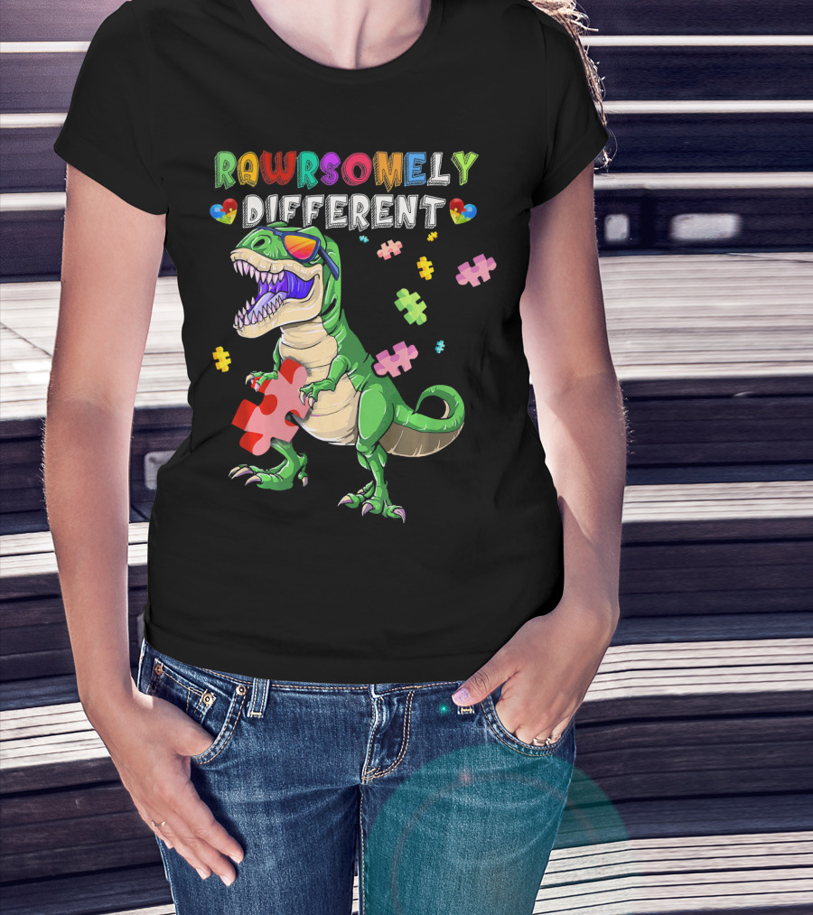 Rawrsomely Different Dinosaur Autism Awareness Puzzle T-Shirt