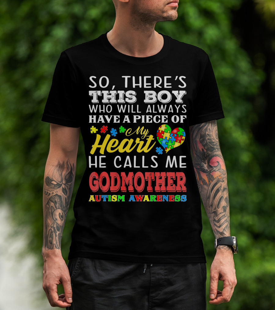 So, There's This Boy Who Will Always Have A Piece Of My Heart He Calls Me Godmother Autism Awareness T-Shirt