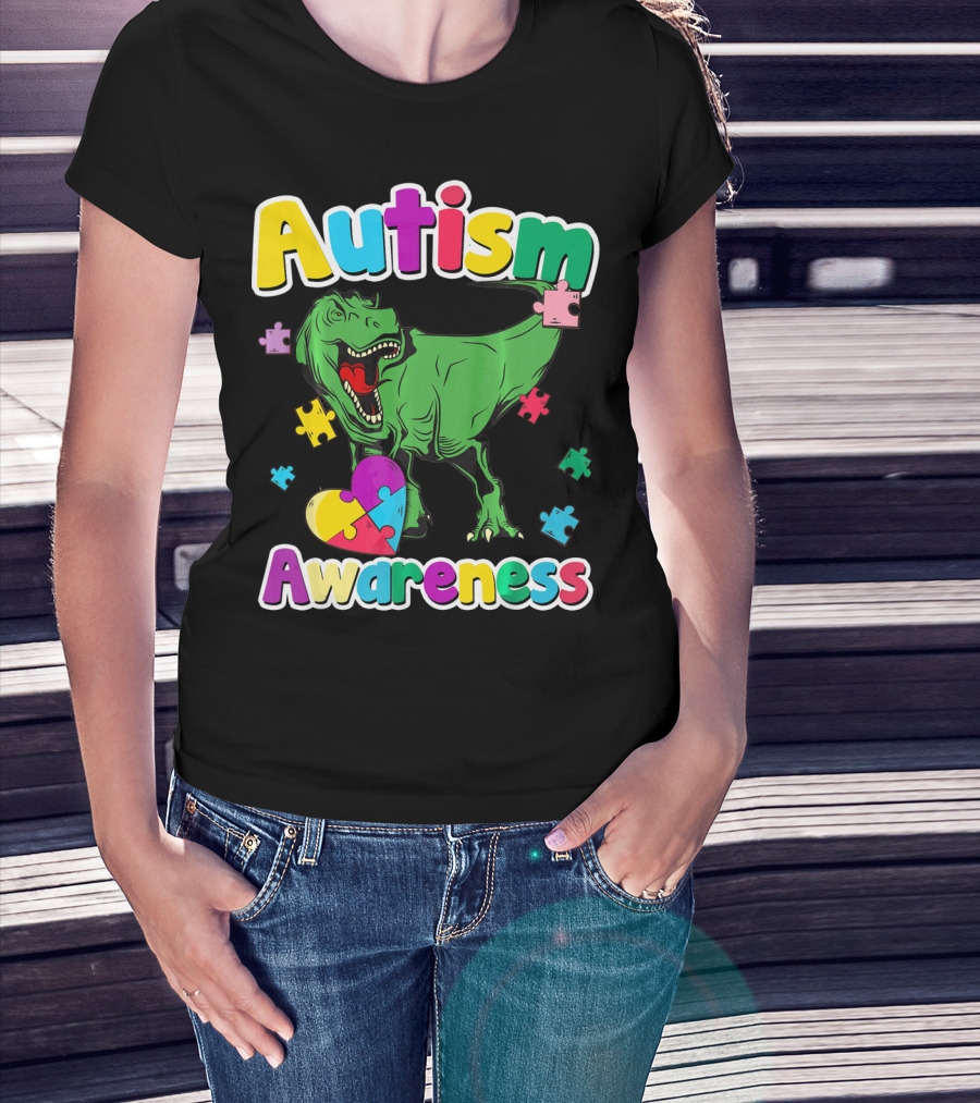 Autism Awareness Colorful Puzzle Tyrannosaurus T-Shirt