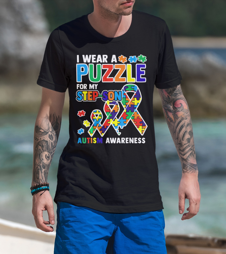 I Wear A Puzzle For My Step-Son Autism Awareness T-Shirt