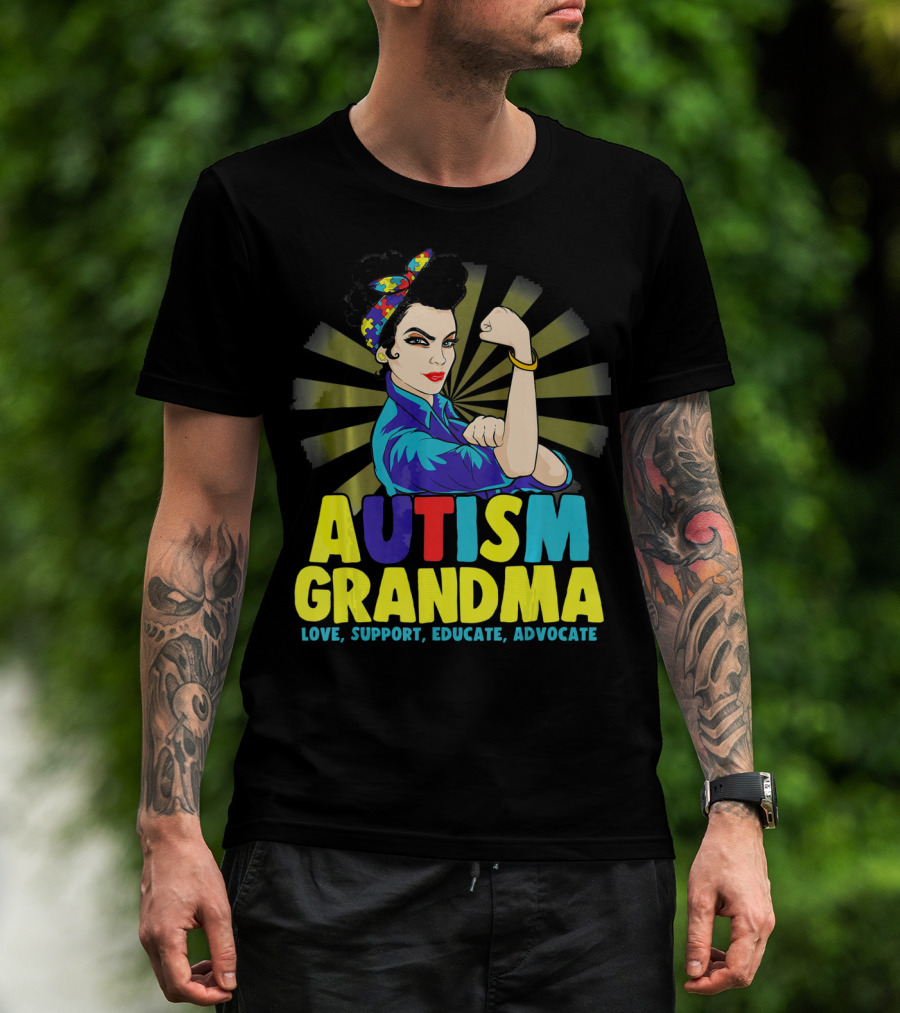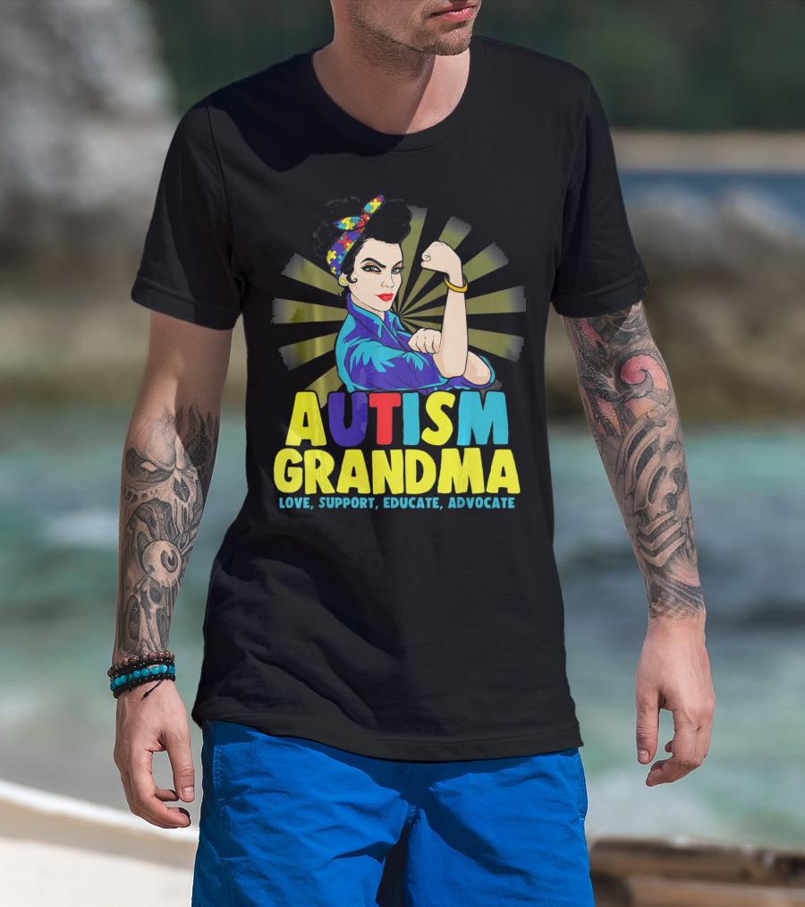 Autism Grandma Love Support Educate Advocate Retro Iconic T-Shirt
