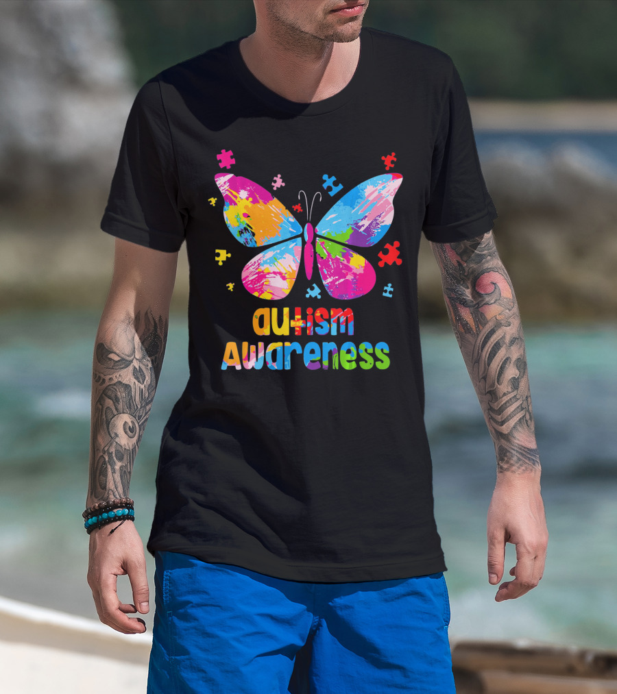 Colorful Butterfly Autism Awareness Puzz Puzzle Pieces T-Shirt