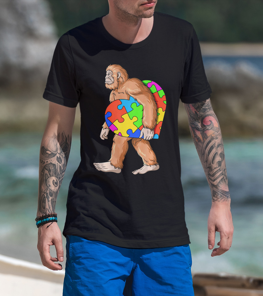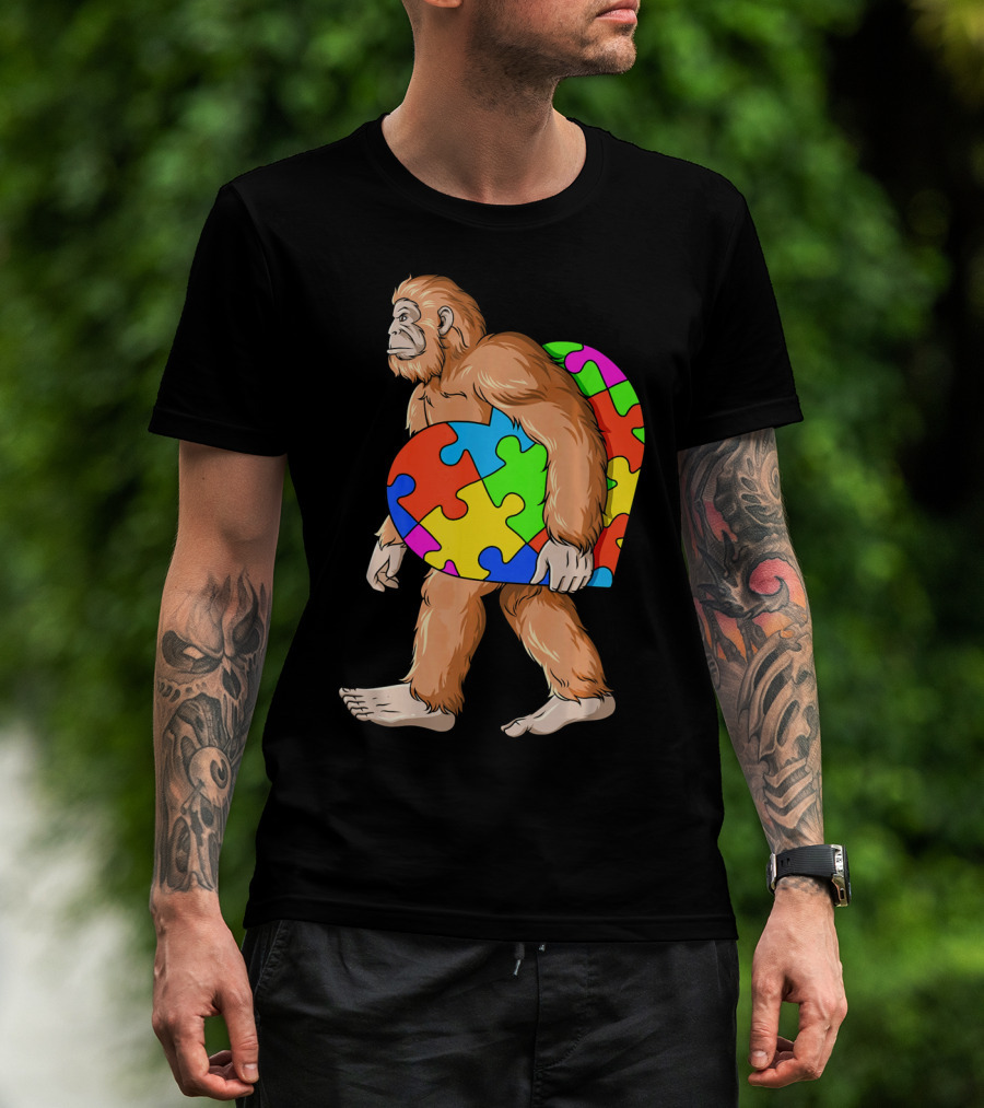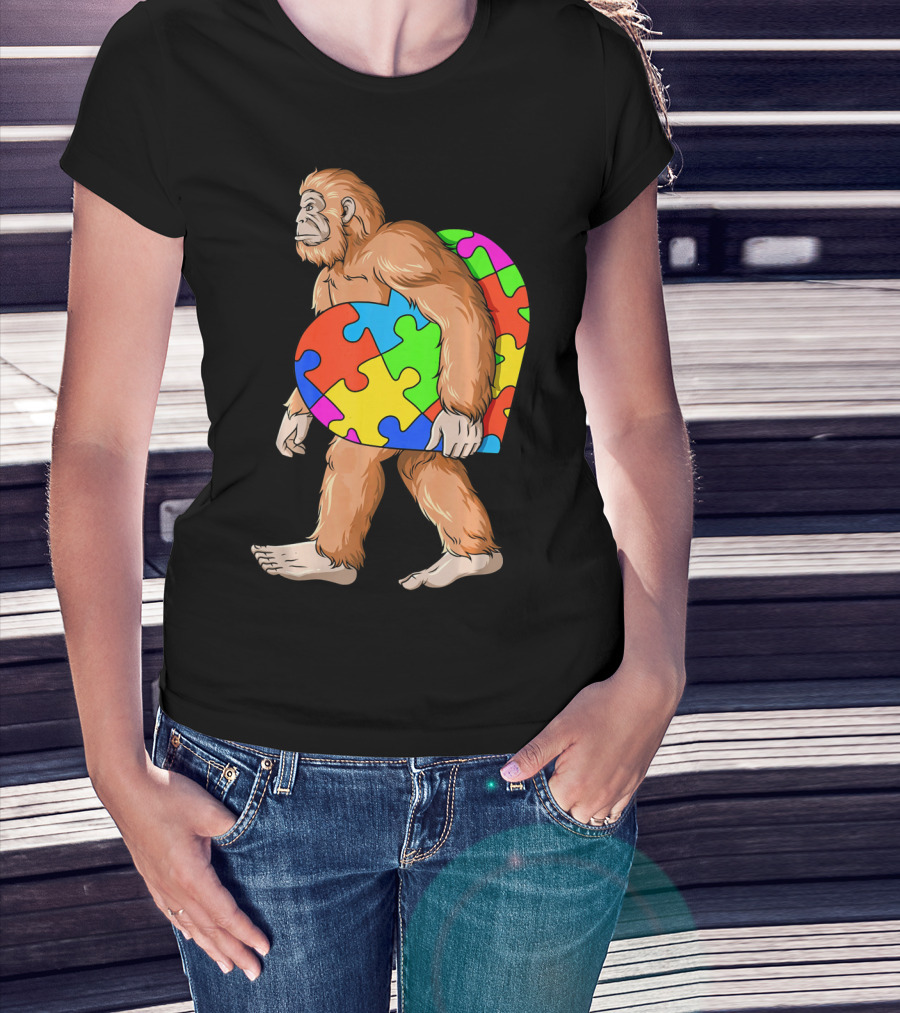 Bigfoot Holding Heart-Shaped Autism Awareness Puzzle T-Shirt