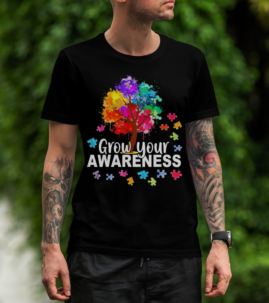 Grow Your Awareness Colorful Tree With Puzzle Pieces T-Shirt
