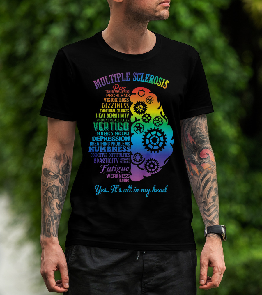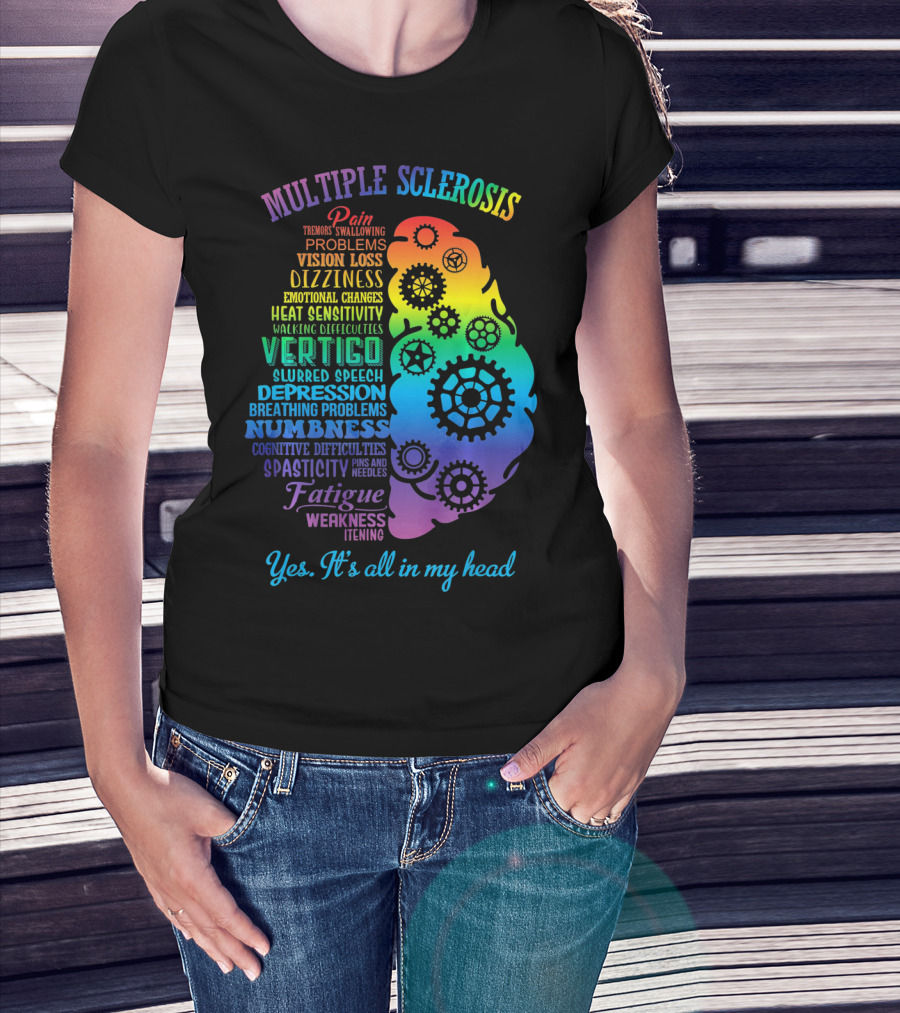 Multiple Sclerosis Awareness Yes It's All In My Head Pain Vision Loss Dizziness Numbness Fatigue T-Shirt