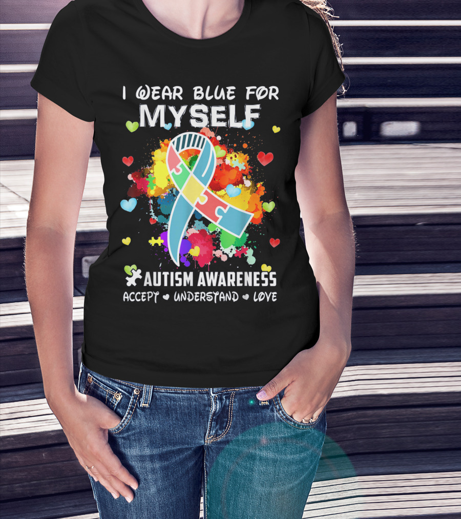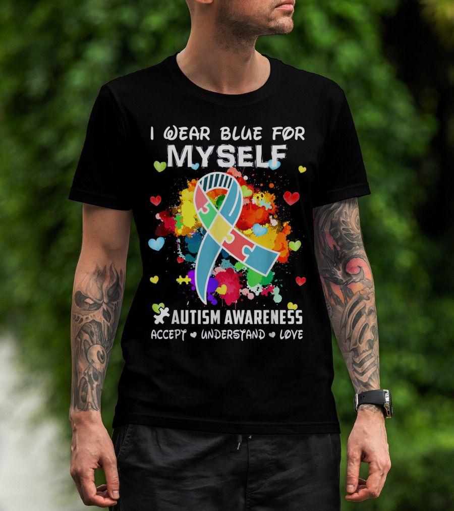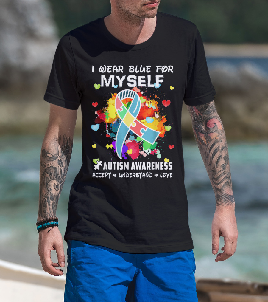 I Wear Blue For Myself Autism Awareness Accept Understand Love Puzzle T-Shirt