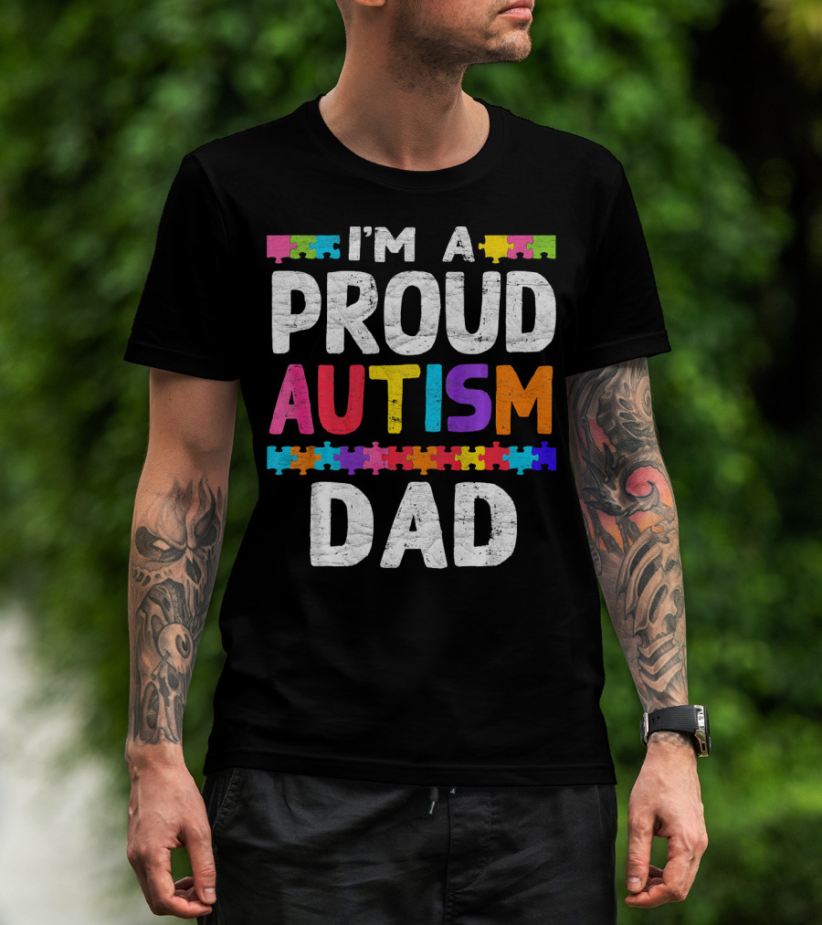 I'm A Proud Autism Dad Autism Awareness Puzzle Pieces T-Shirt