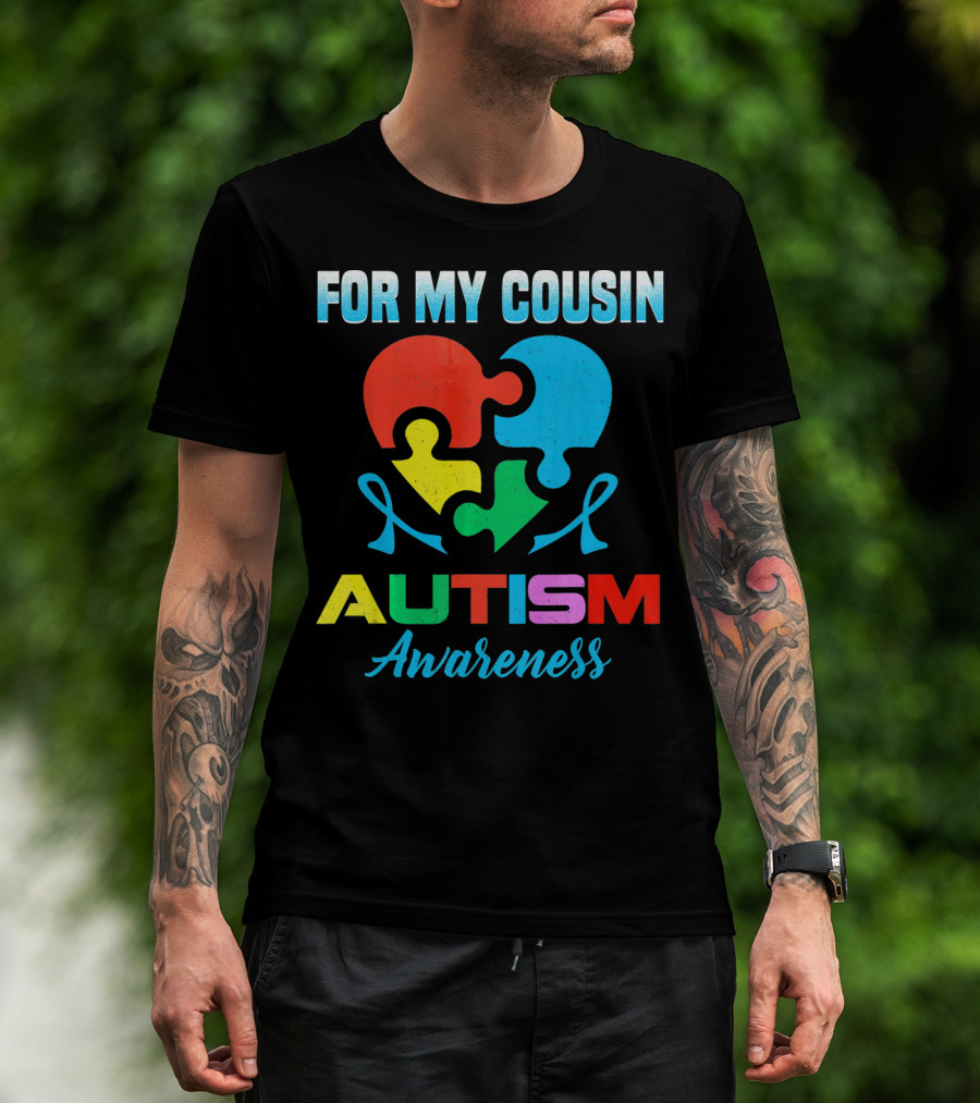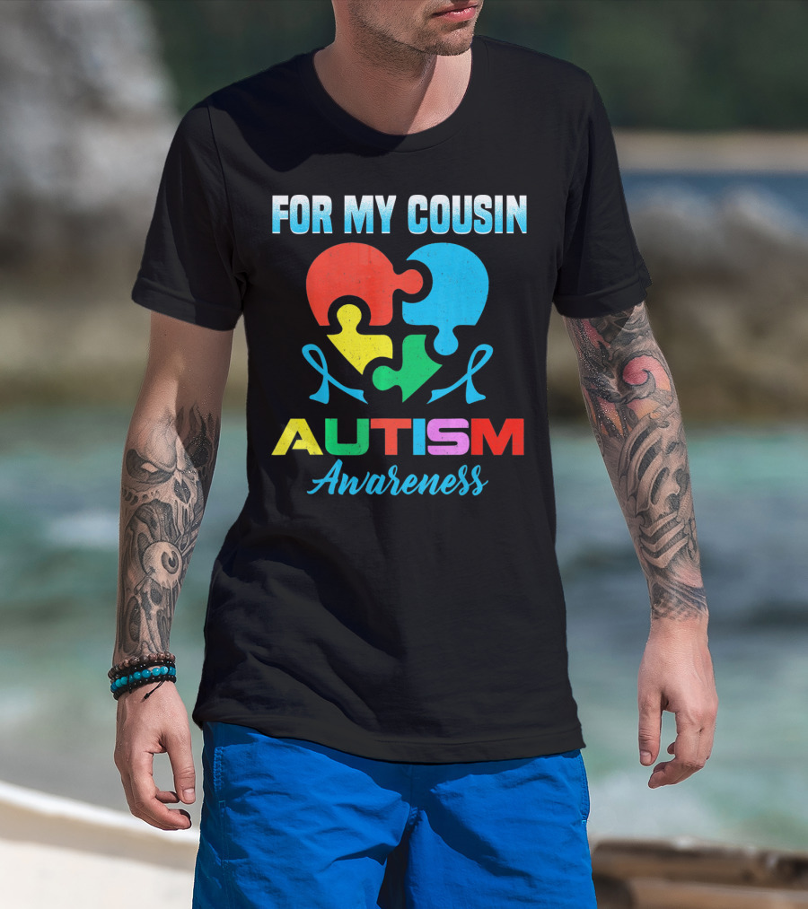 For My Cousin Autism Awareness Puzzle Heart Ribbons T-Shirt