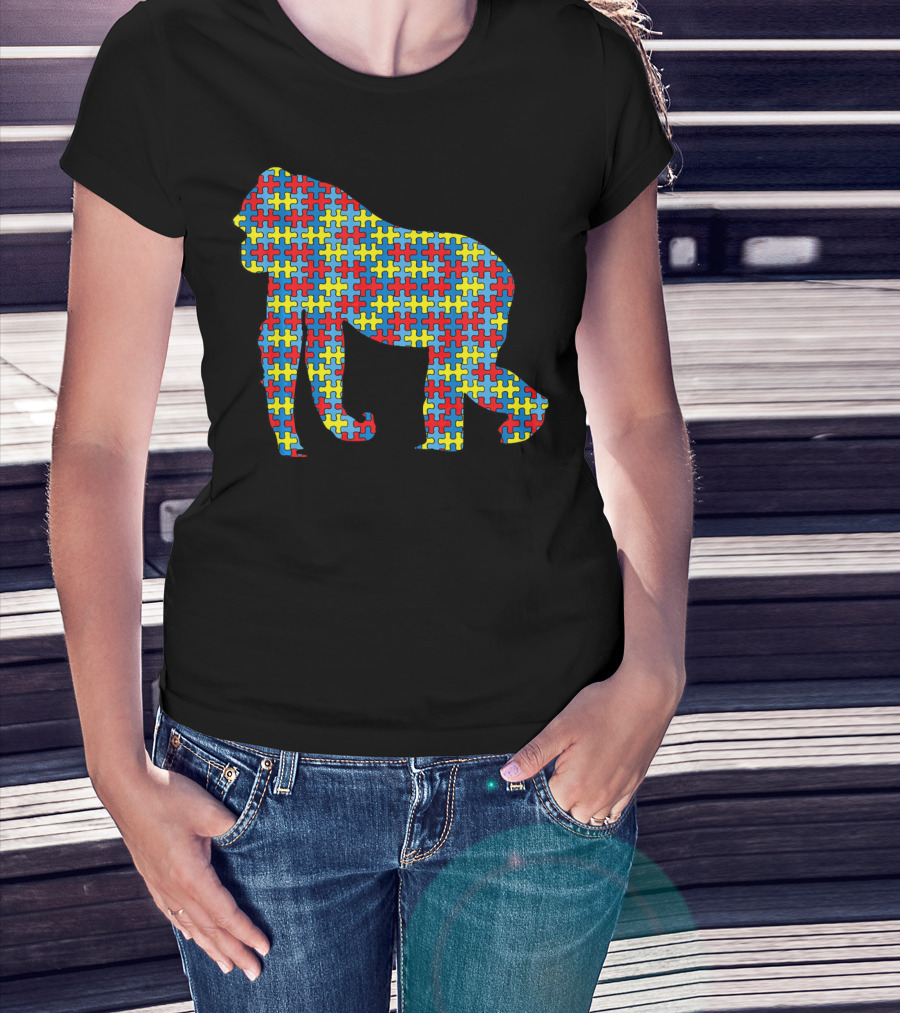 Gorilla Autism Awareness Puzzle Pattern Kids Ape Animal T-Shirt