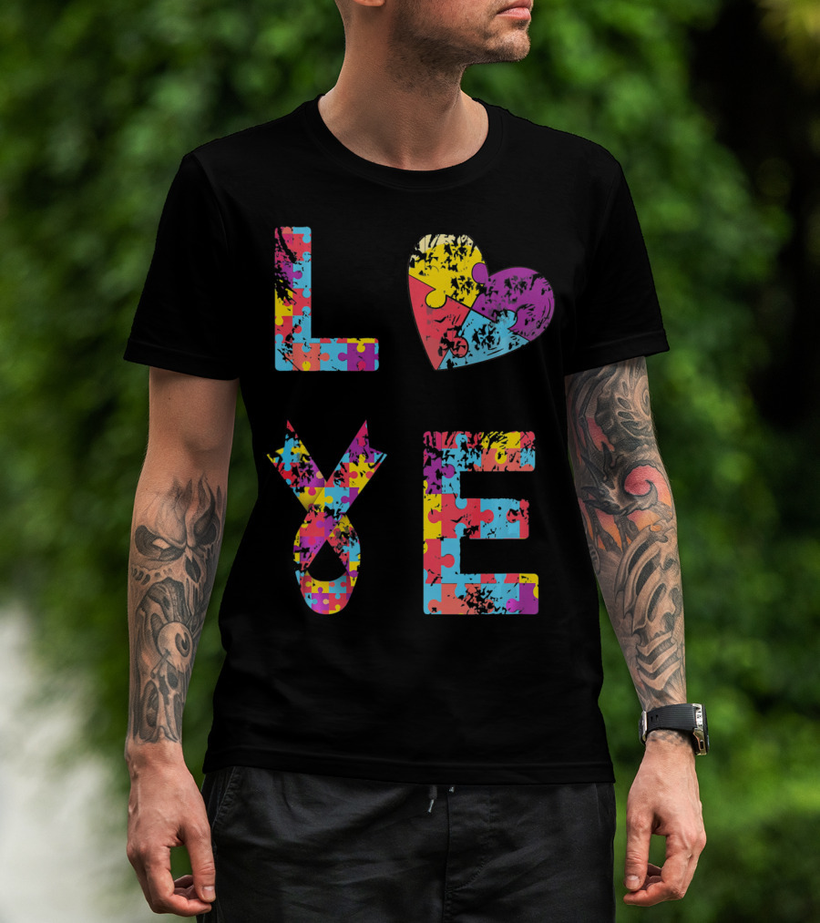 Autism Awareness Love Puzzle Heart Ribbon Design For Women Men Kids Rib T-Shirt