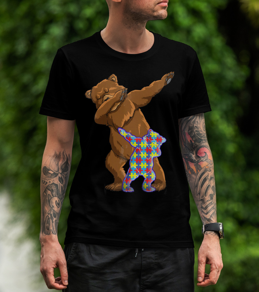 Dabbing Mama Bear With Autism Puzzle Pattern Cub T-Shirt
