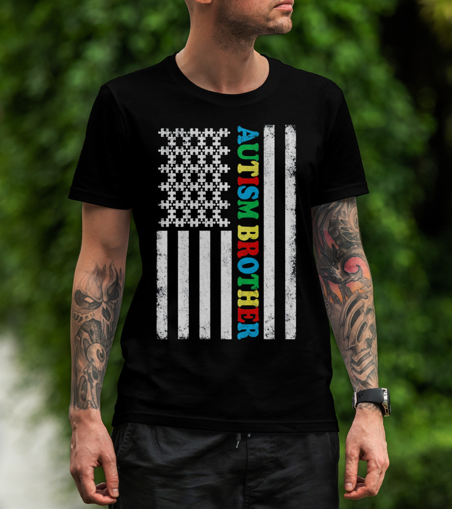 Autism Brother American Flag Puzzle Piece T-Shirt