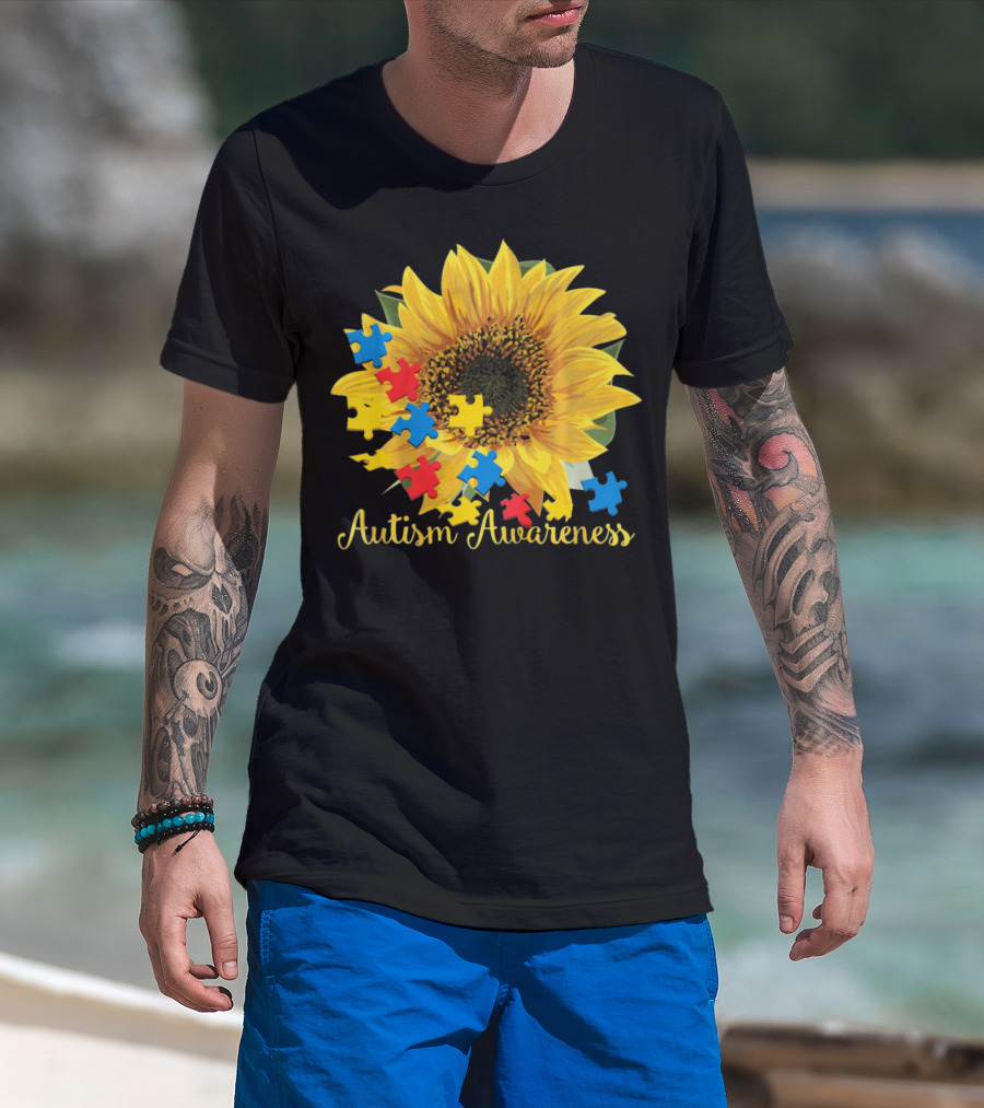 Autism Awareness Sunflower With Puzzle Pieces T-Shirt
