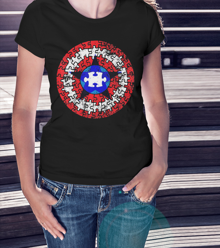 Captain Autism Superhero Shield Awareness Puzzle Star Emblem T-Shirt