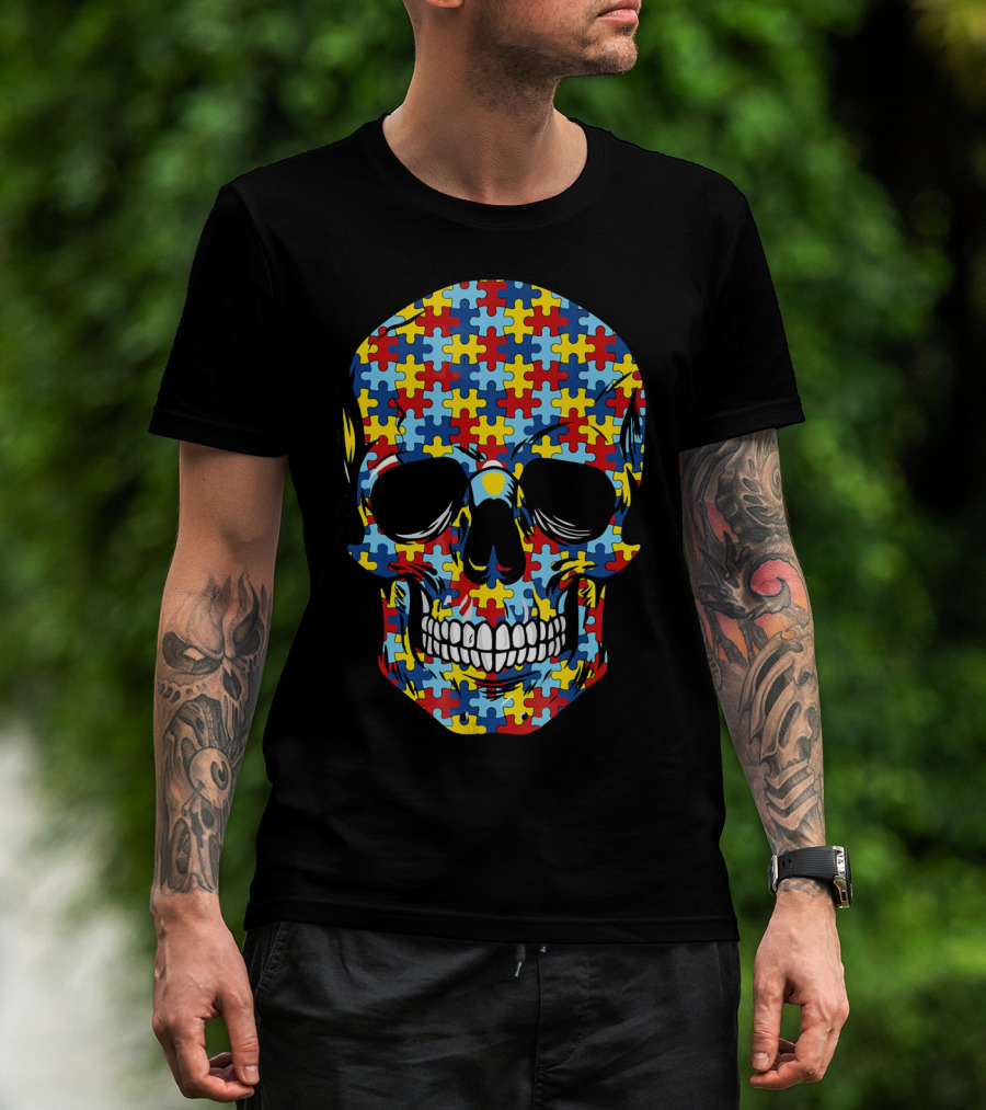 Skull Puzzle Pattern Autism Awareness T-Shirt
