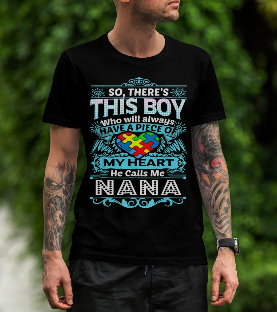 The So There's This Boy Who Will Always Have a Piece of My Heart He Calls Me Nana T-shirt is designed for everyday wear and a consistent fit. Fabric is pre-shrunk ring-spun cotton with durable stitching. See the size chart below for exact measurements.