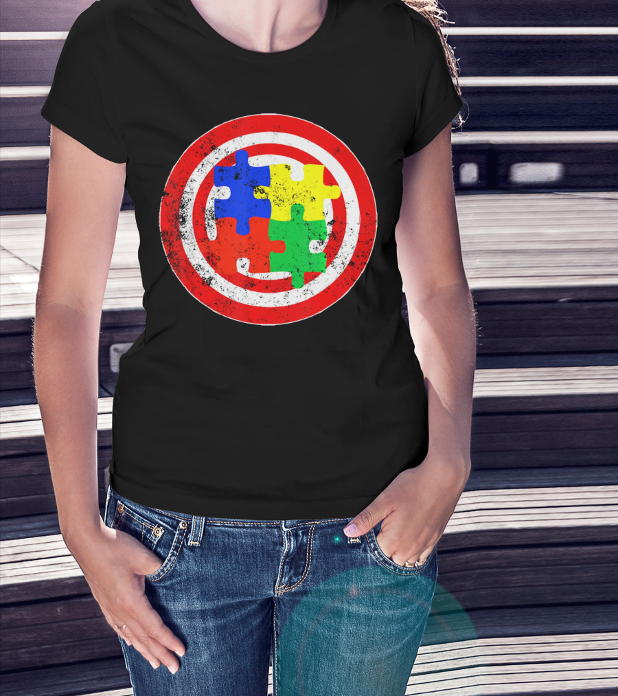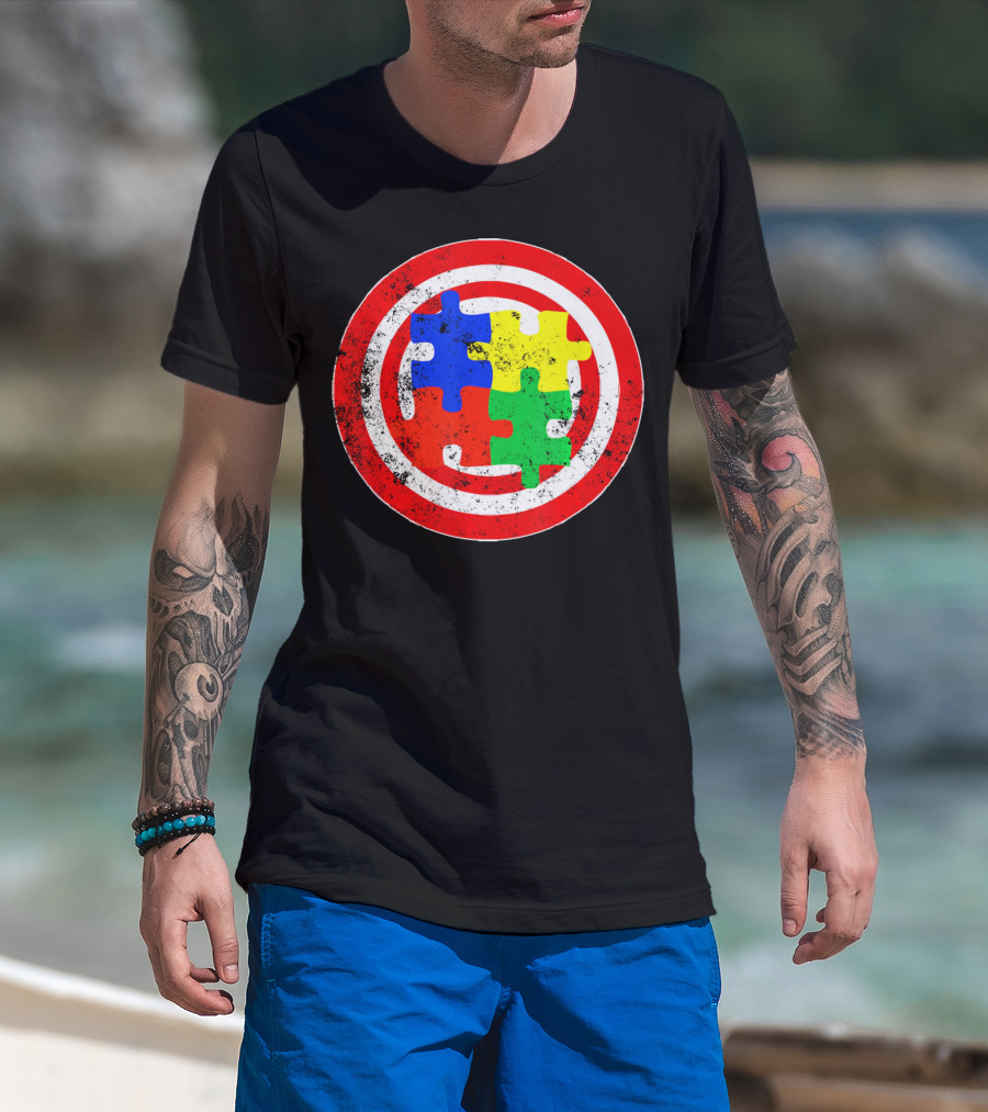 Autism Awareness Puzzle Shield Captain Autism T-Shirt
