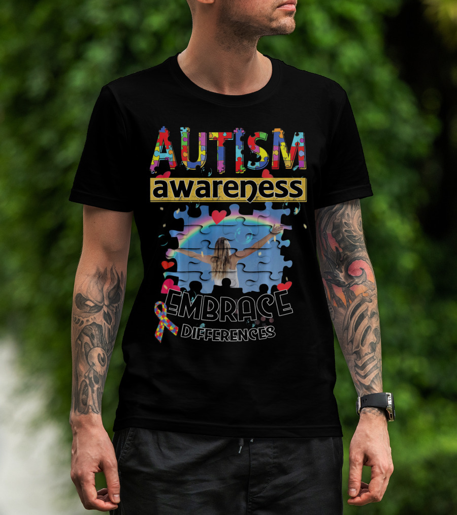 AUTISM AWARENESS EMBRACE DIFFERENCES PUZZLE PIECE RAINBOW T-Shirt