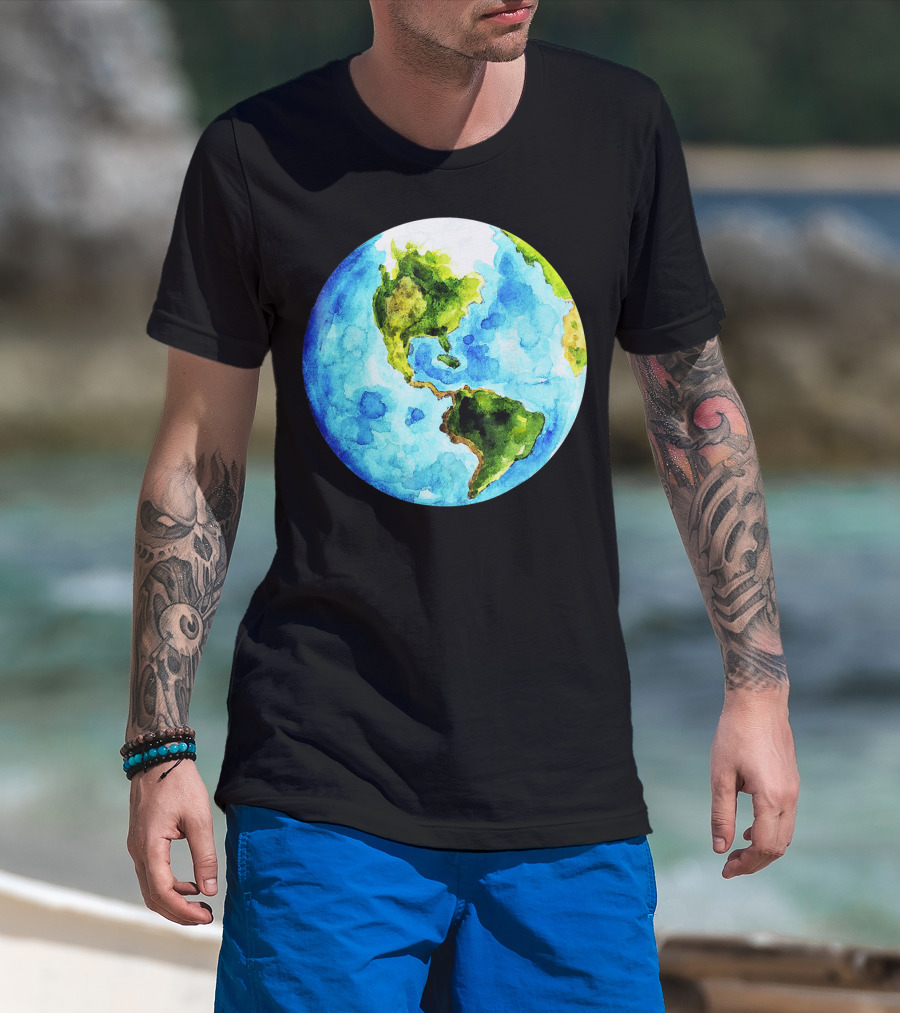 Earth Day Love Earth Watercolor Planet Earth T-Shirt
