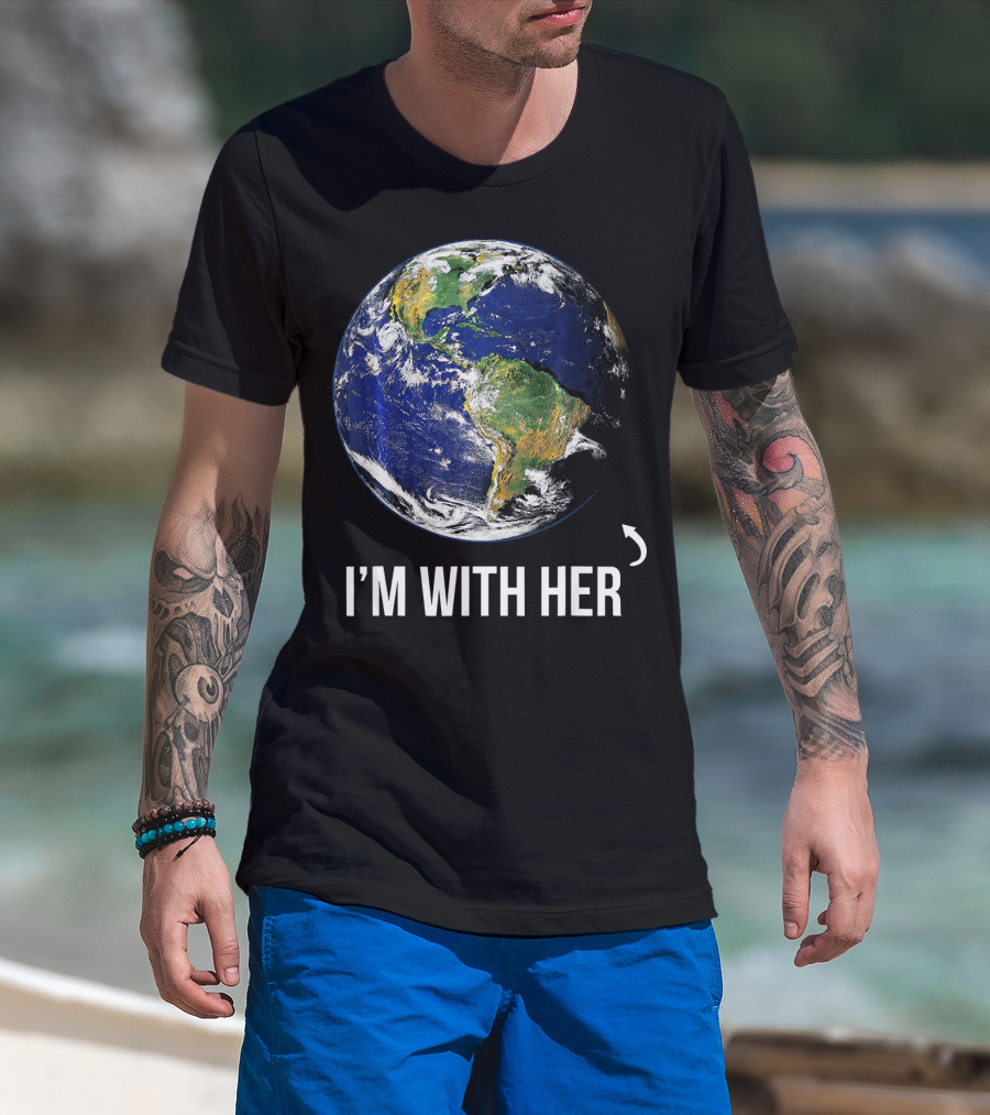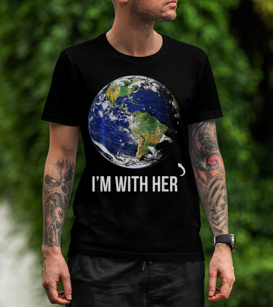 The I'm With Her Earth Arrow T-shirt is designed for everyday wear and a consistent fit. Fabric is pre-shrunk ring-spun cotton with durable stitching. See the size chart below for exact measurements.