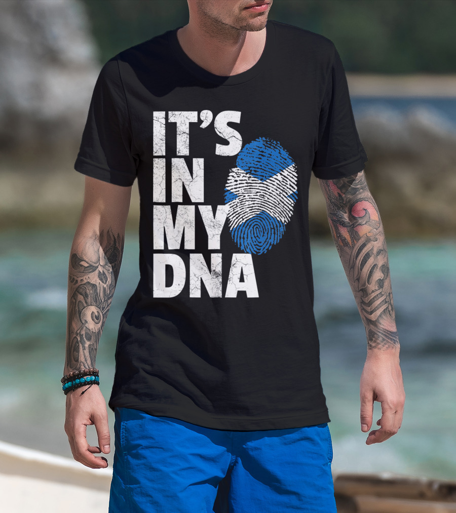 IT'S IN MY DNA Scottish Flag Fingerprint Scotland T-Shirt
