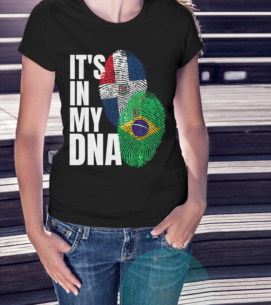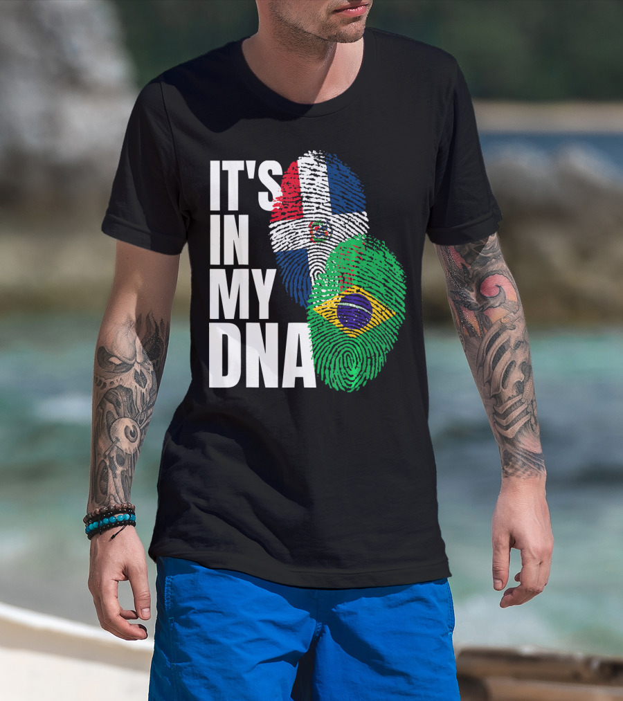 It's In My DNA Brazilian And Dominican Flag Mix T-Shirt