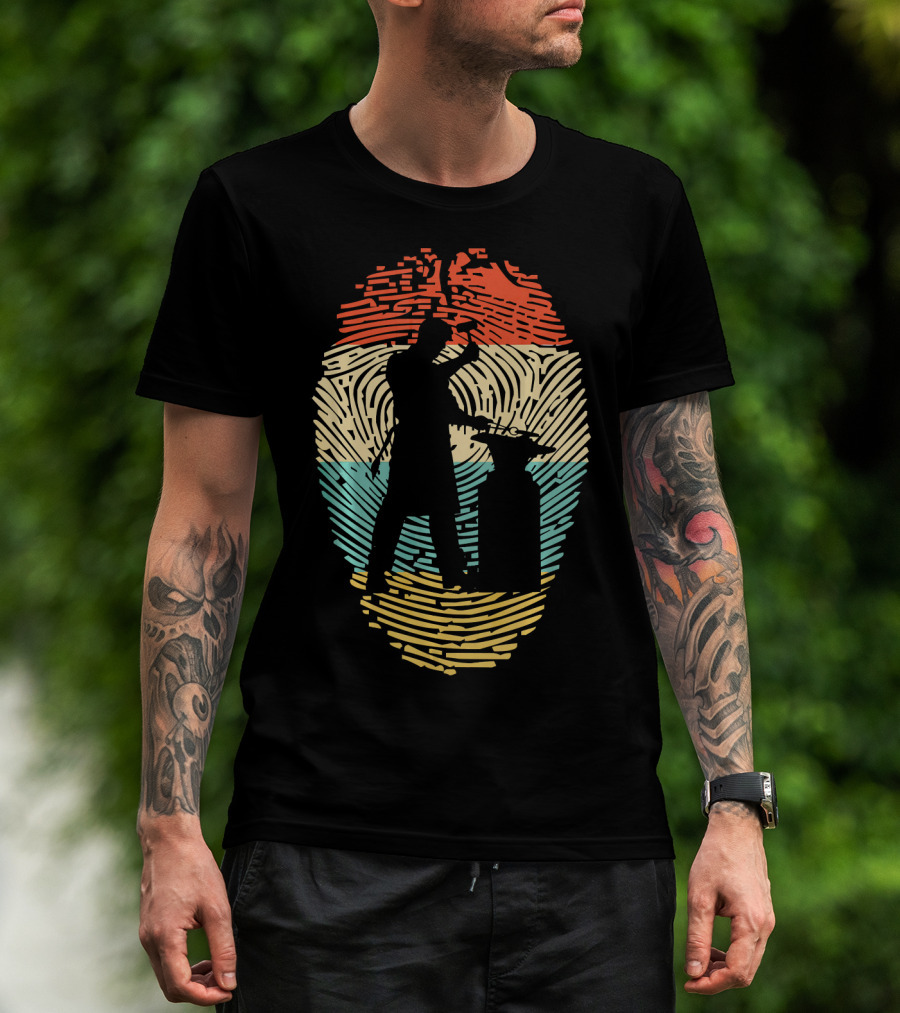 The Fingerprint Retro BLACKSMITH Silhouette Craftsmanship T-shirt is designed for everyday wear and a consistent fit. Fabric is pre-shrunk ring-spun cotton with durable stitching. See the size chart below for exact measurements.