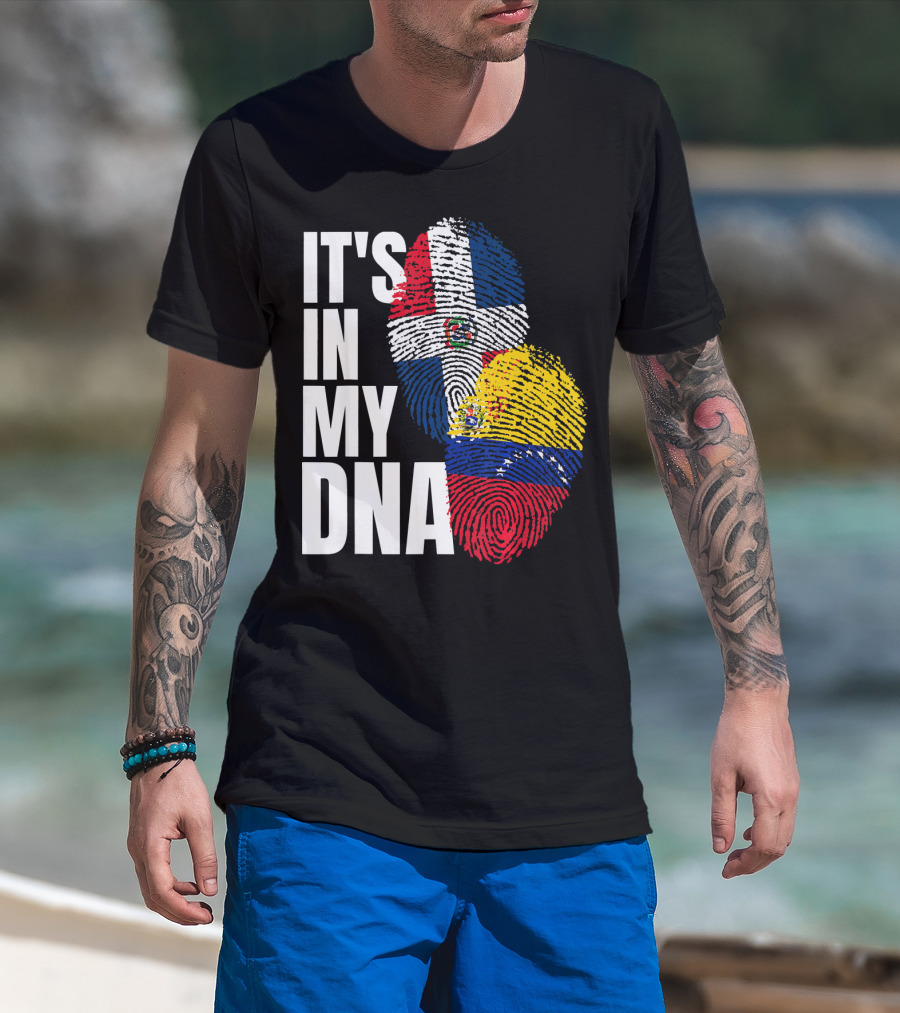 It's In My DNA Dominican Venezuelan Fingerprint Flags T-Shirt