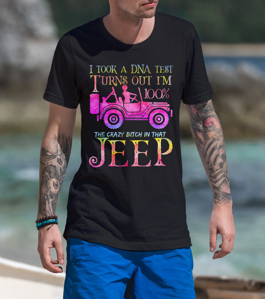 The I Took A DNA Test Turns Out I'm 100% The Crazy Bitch In That Jeep T-shirt is designed for everyday wear and a consistent fit. Fabric is pre-shrunk ring-spun cotton with durable stitching. See the size chart below for exact measurements.