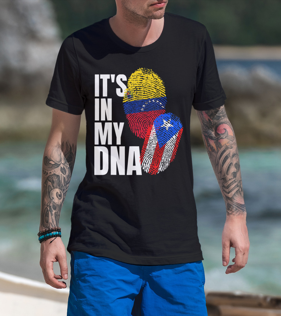 It's In My DNA Venezuelan And Boricua Flag Fingerprints T-Shirt