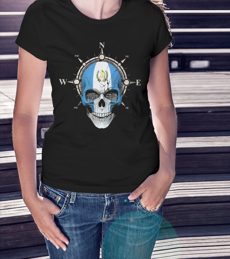 Guatemala Flag Skull Compass Guatemalan Directions T-Shirt