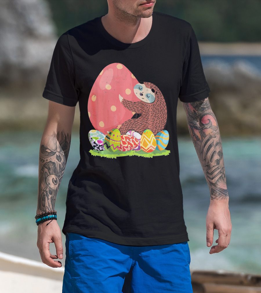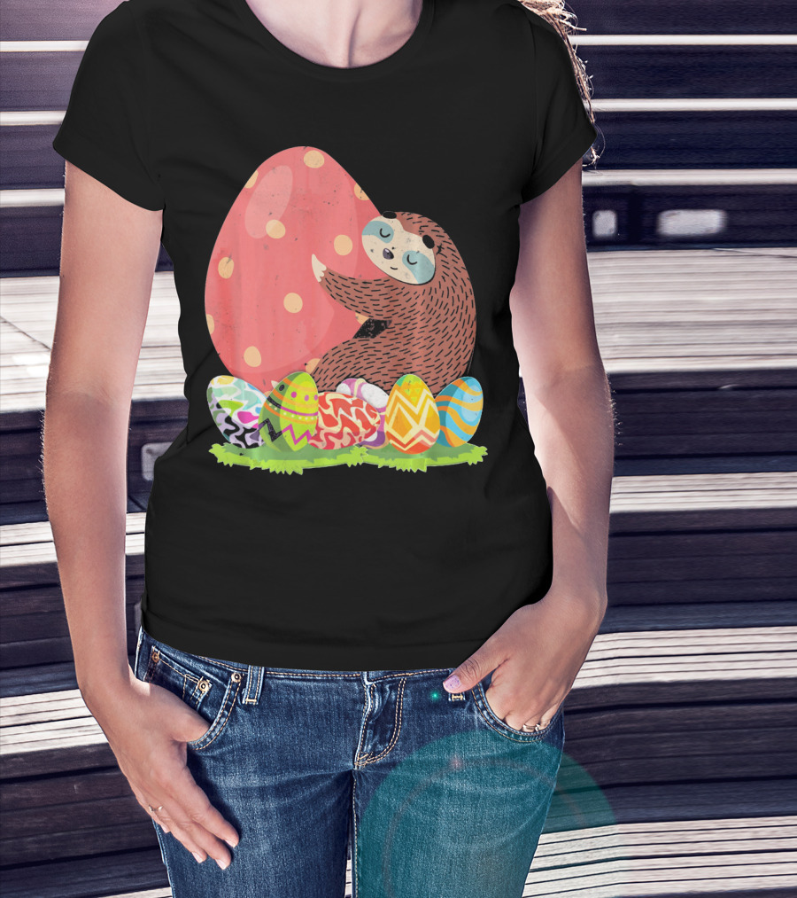 Girls Sloth Easter Women Funny Easter Egg Hug T-Shirt