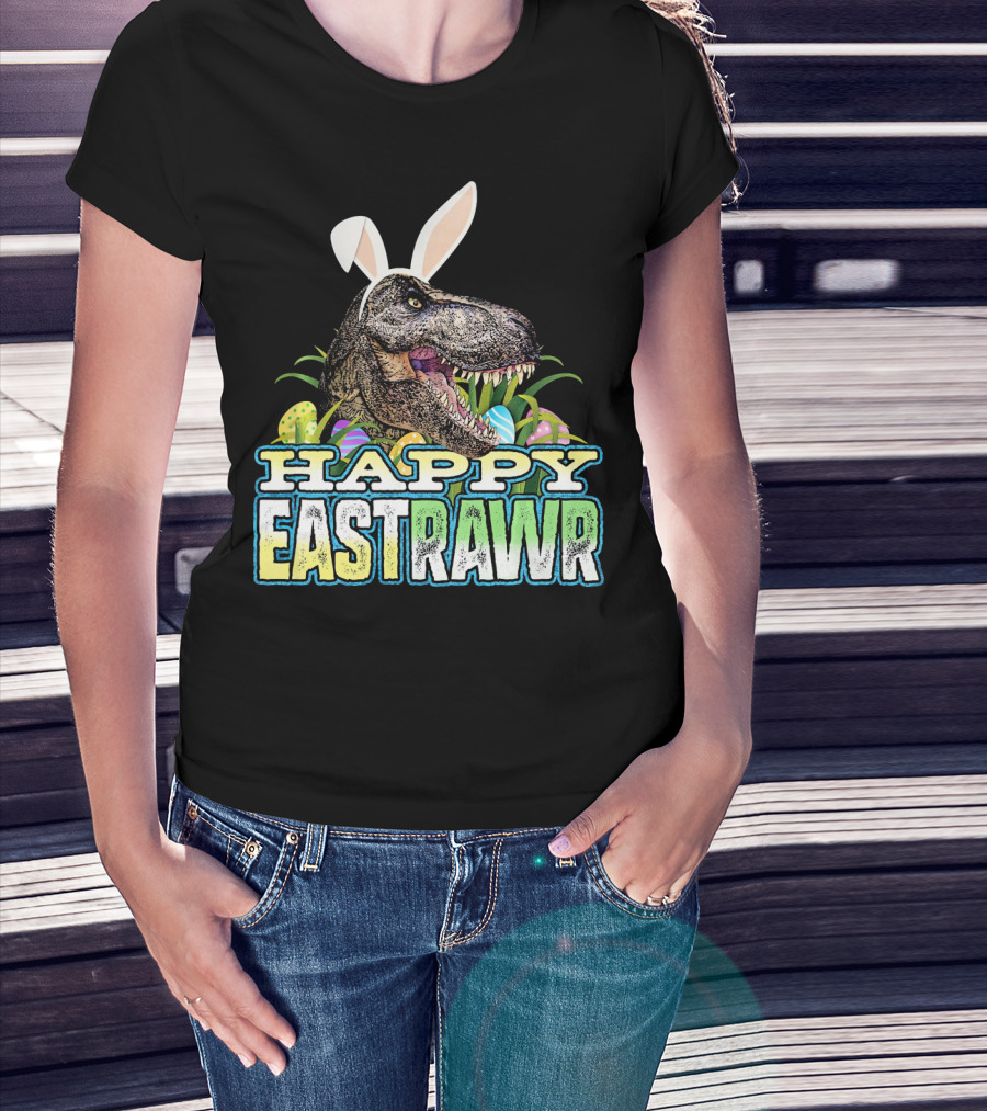 Happy Eastrawr Dinosaur Bunny Ears Easter Eggs T-Shirt
