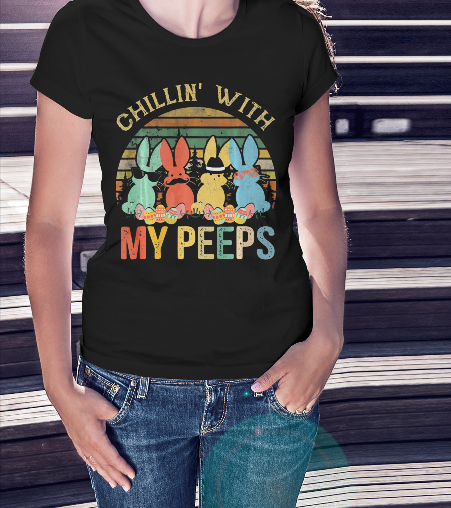 Chillin' With My Peeps Funny Vintage Easter T-Shirt