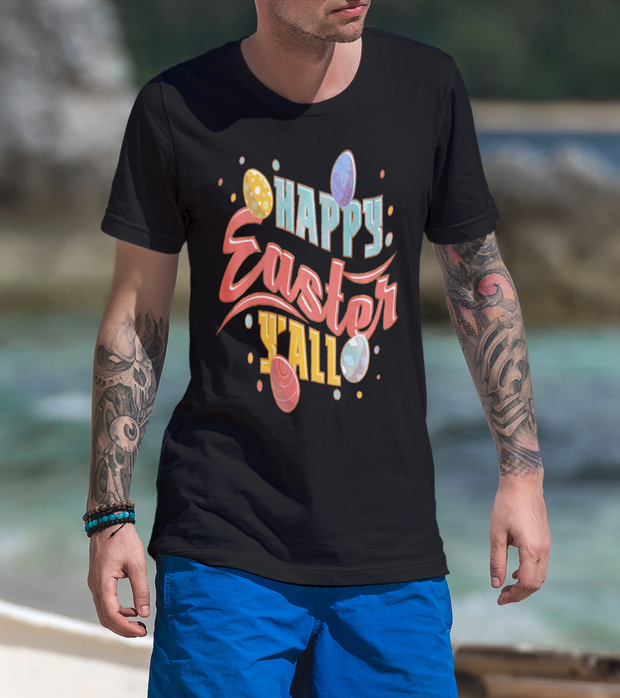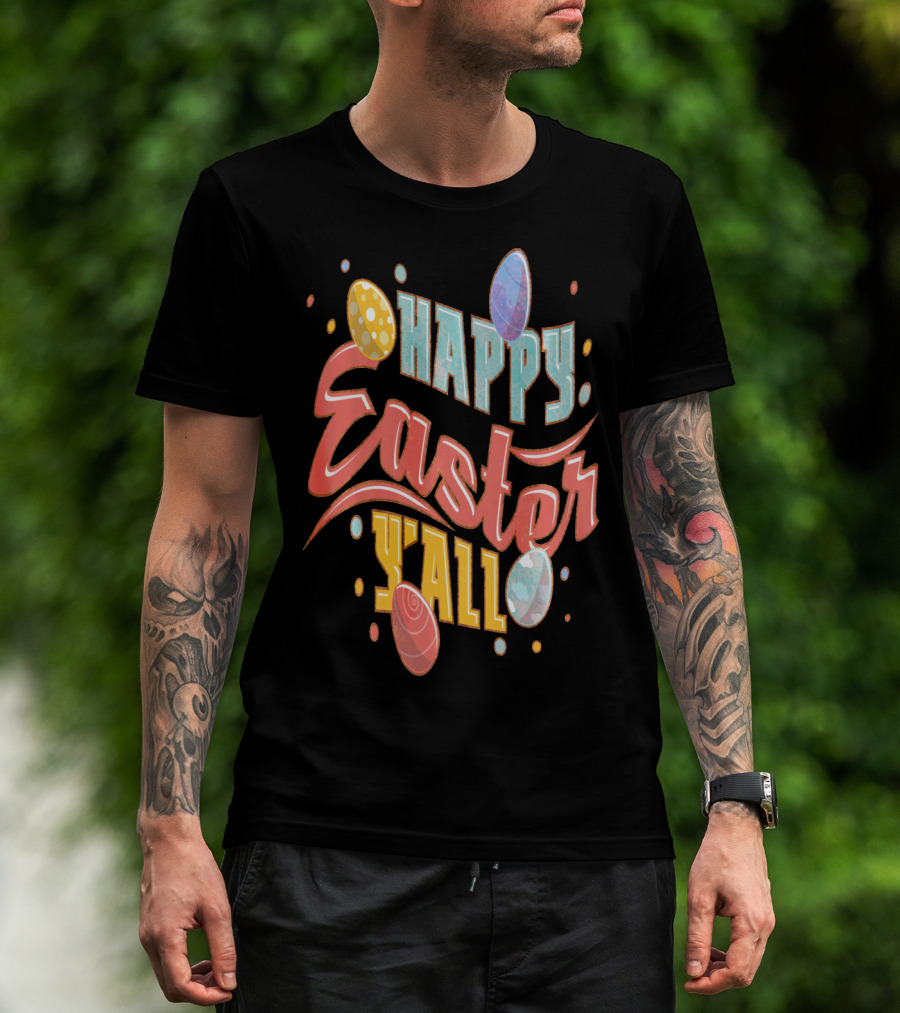 The Happy Easter Y'all Outfits Men T-shirt is designed for everyday wear and a consistent fit. Fabric is pre-shrunk ring-spun cotton with durable stitching. See the size chart below for exact measurements.