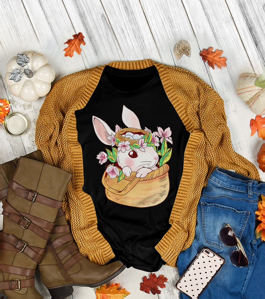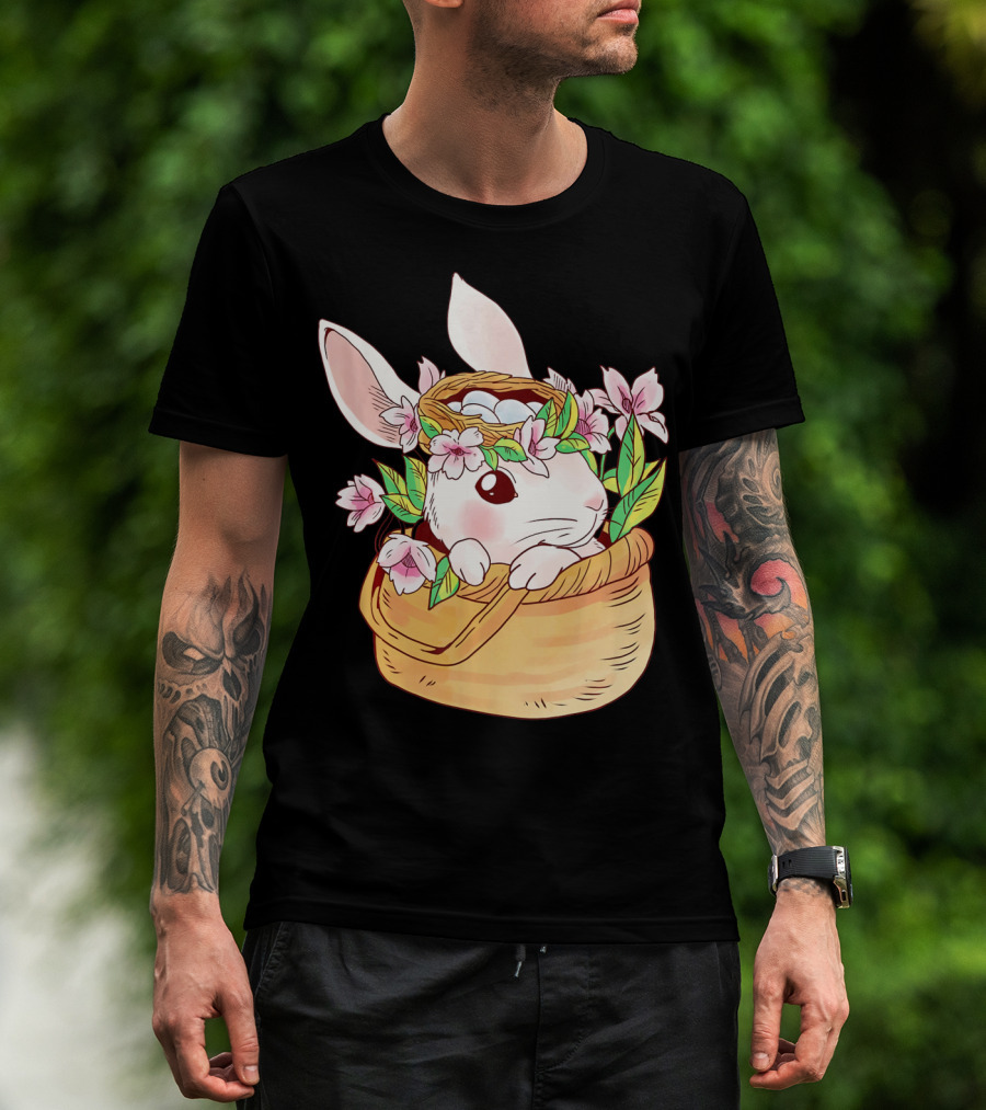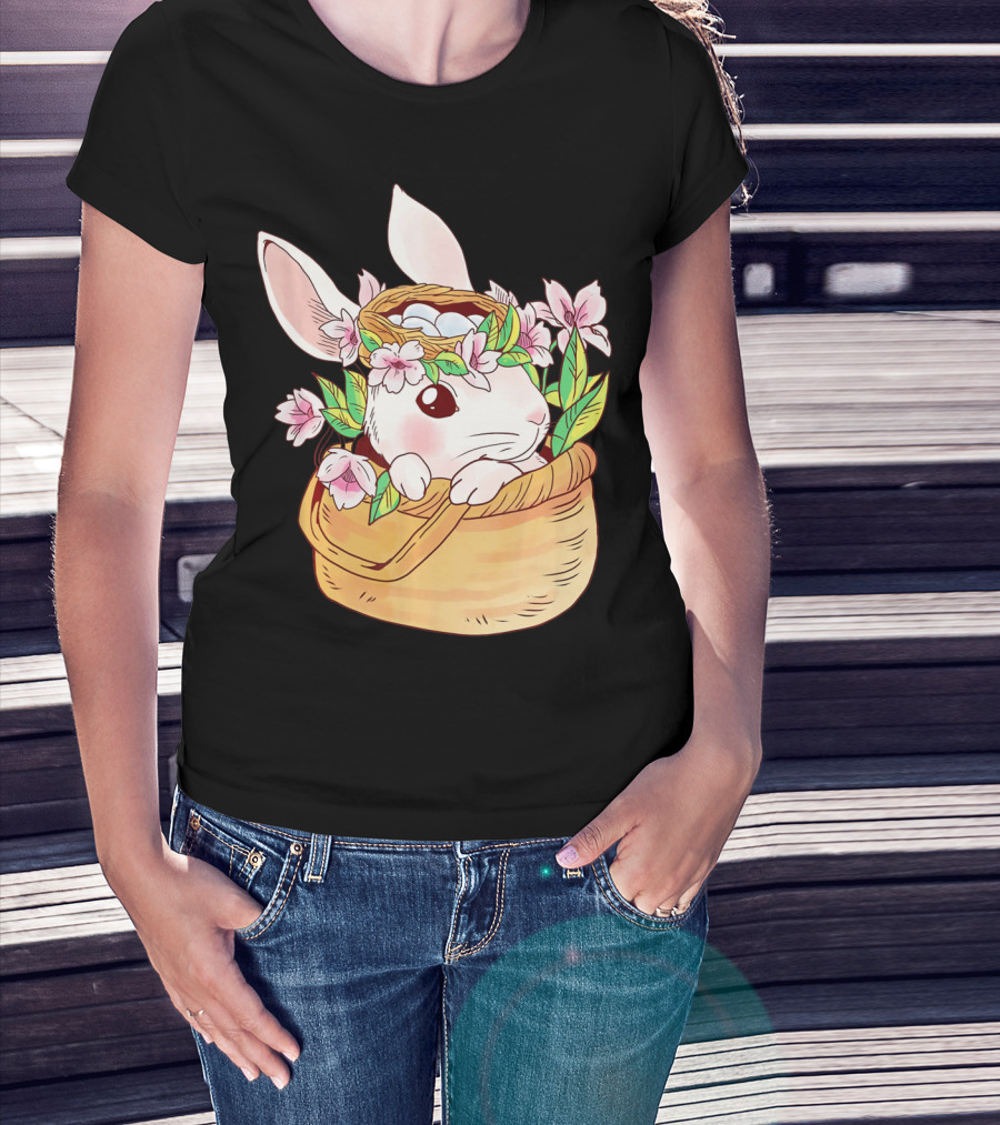 Cute Easter Bunny Girl Floral Basket T-Shirt