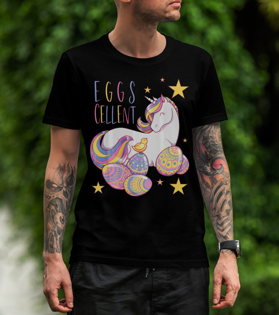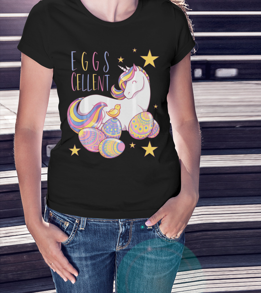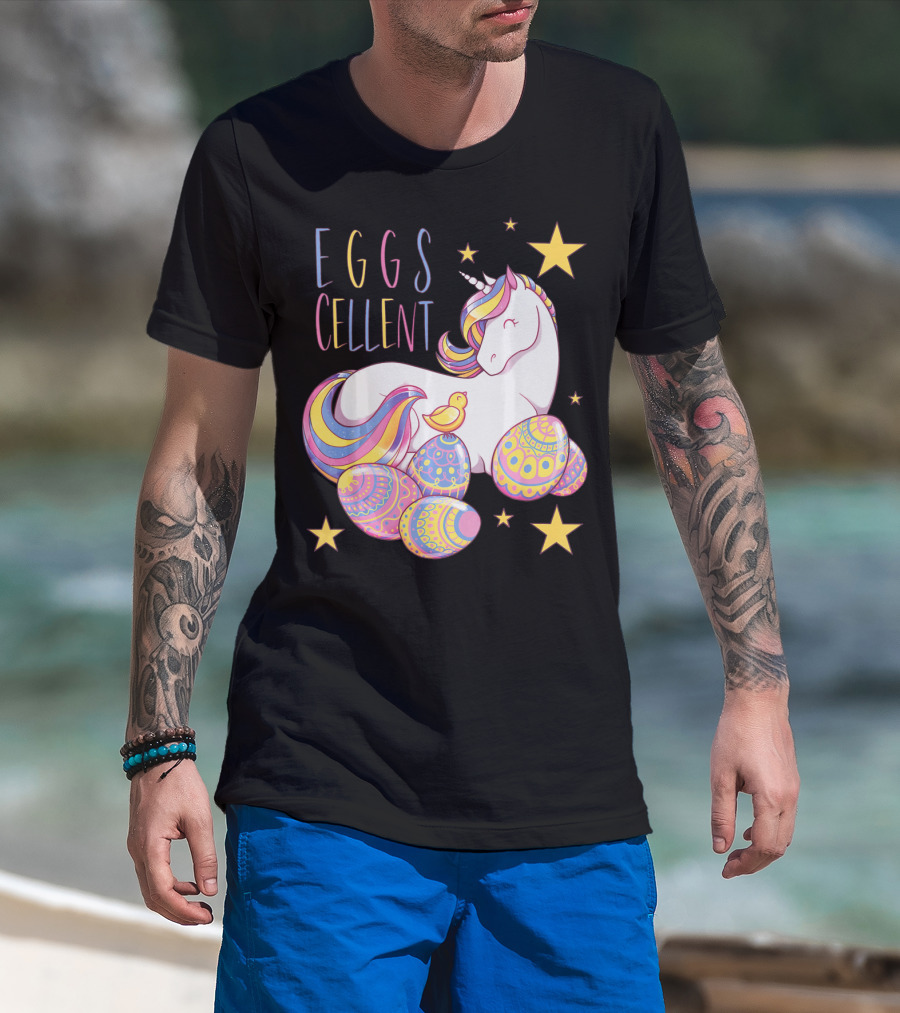 Eggs Cellent Easter Unicorn With Colorful Eggs And Stars T-Shirt