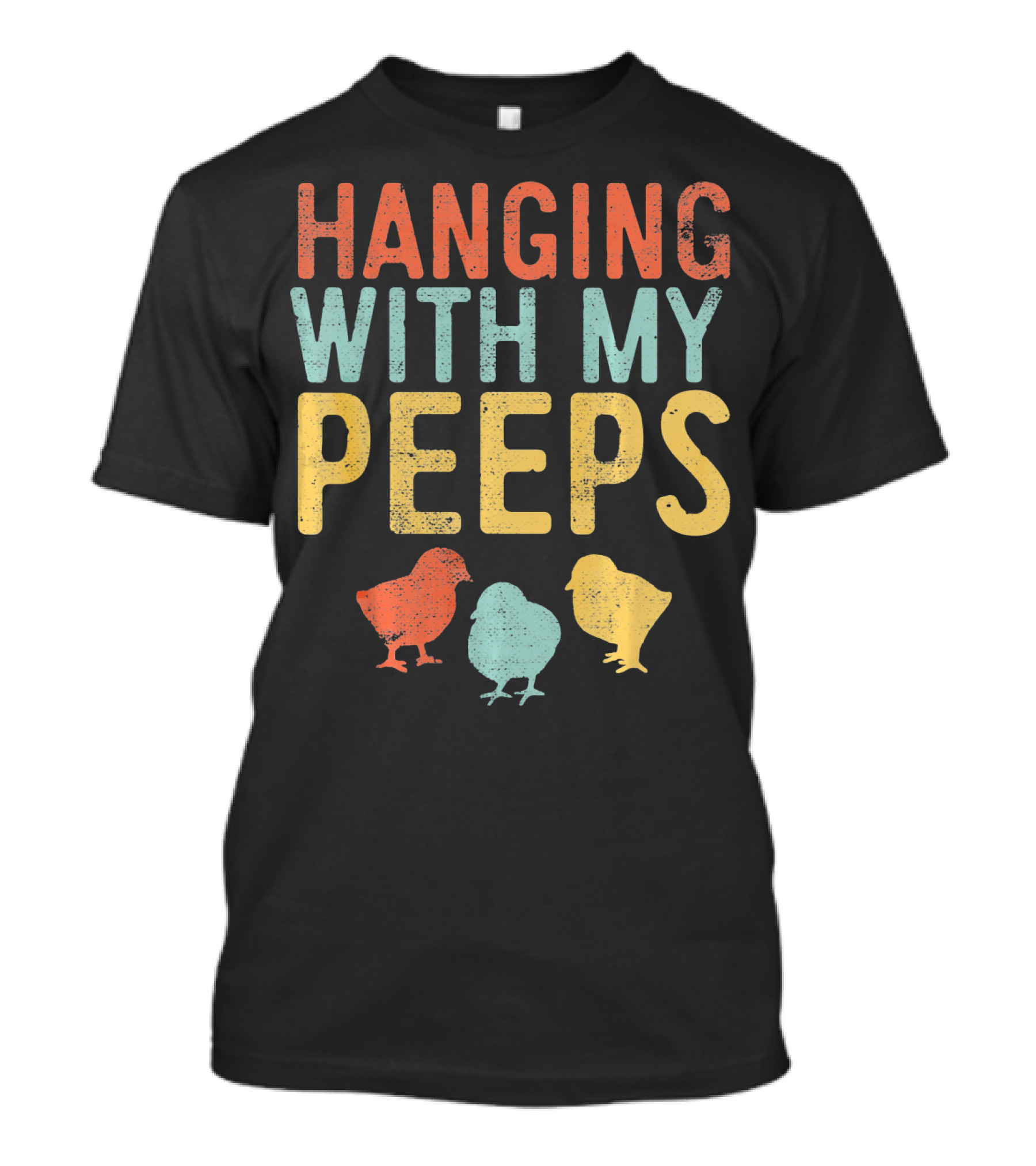 The Hanging With My Peeps Easter Chicks Retro T-shirt is designed for everyday wear and a consistent fit. Fabric is pre-shrunk ring-spun cotton with durable stitching. See the size chart below for exact measurements.