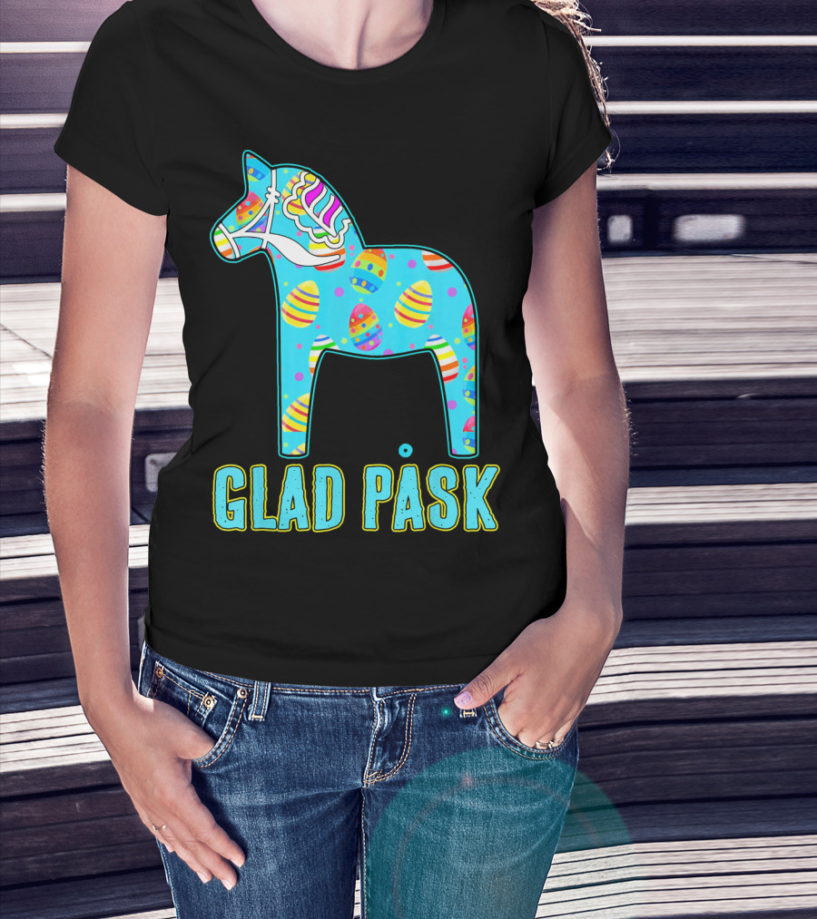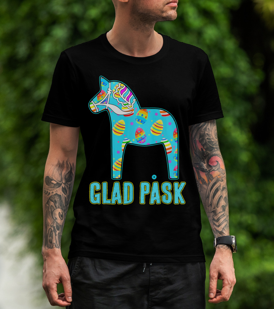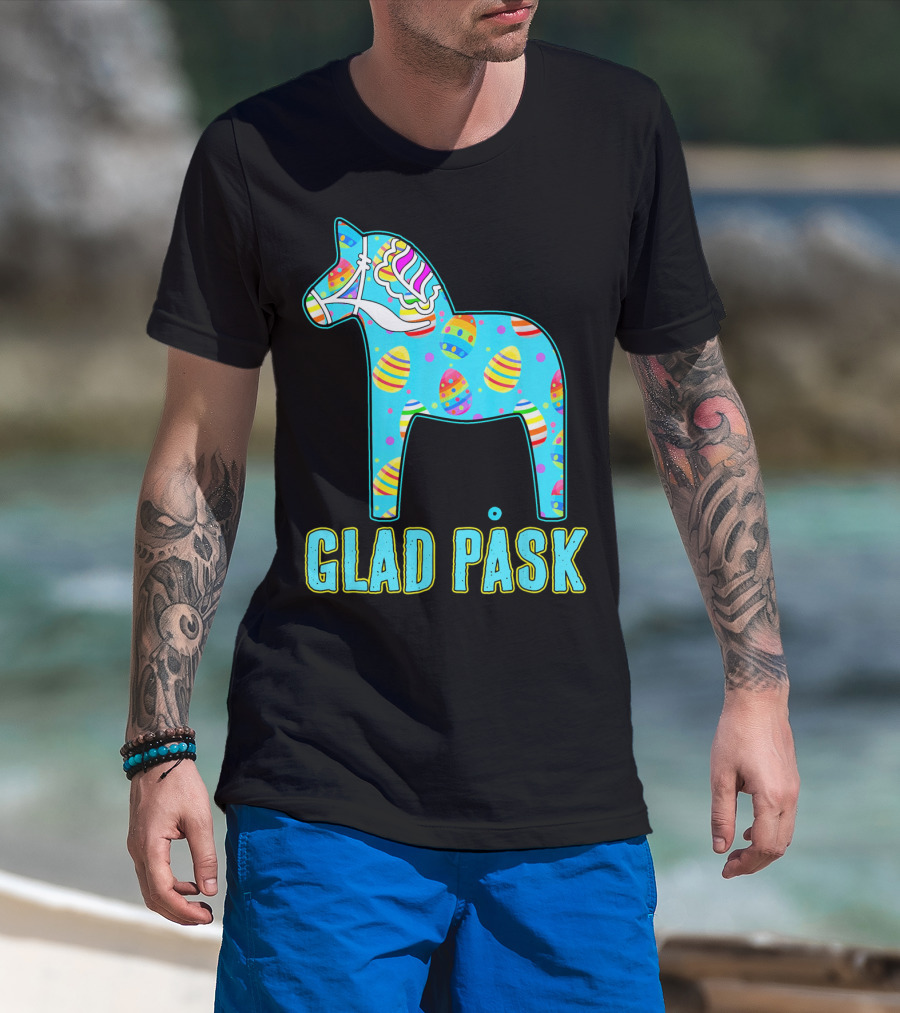 Glad Påsk Swedish Easter Dala Horse With Colorful Eggs T-Shirt