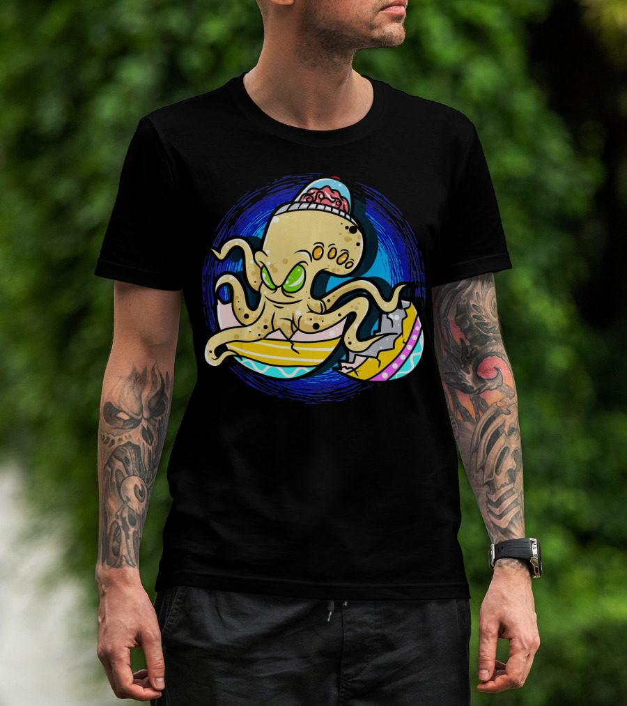 Alien Octopus Breaking Out Of Easter Egg Hunt Strategy T-Shirt
